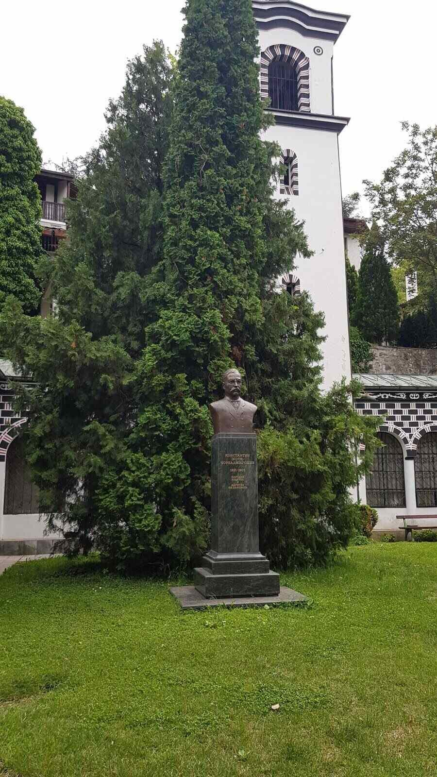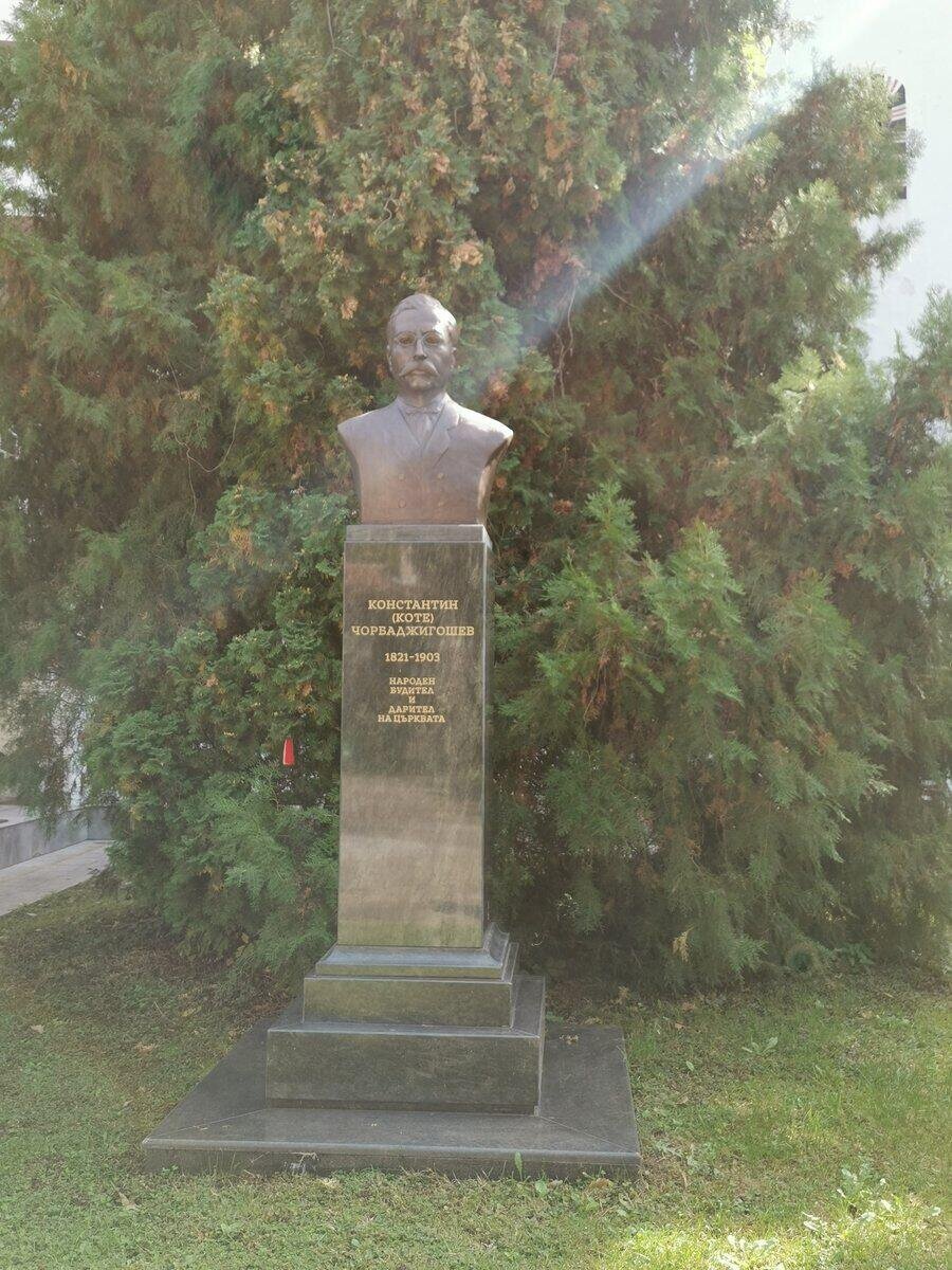 Скулптурата на Константин Чорбаджигошев е разположена в двора на храма "Въведение Богородично" в Благоевград. Църквата се намира в историческия квартал "Вароша", известен със своя възрожденски дух. Преди изграждането на сегашния храм на същото място е съществувала малка църква, в която е пребивавал отшелник. На това място е било открито първото килийно училище в града, което е играло ключова роля в духовното и образователното развитие на Горна Джумая – историческото наименование на Благоевград.