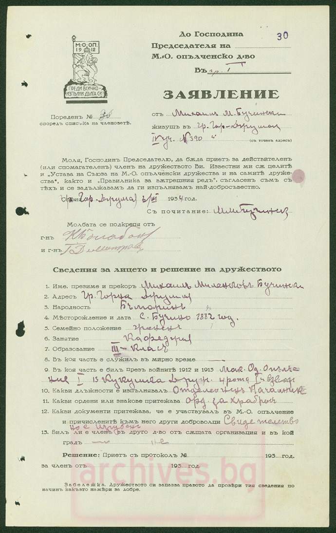При избухването на Балканската война в 1912 година двама души от Бучино са доброволци в Македоно-одринското опълчение .
