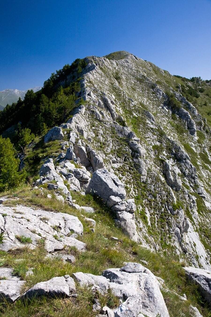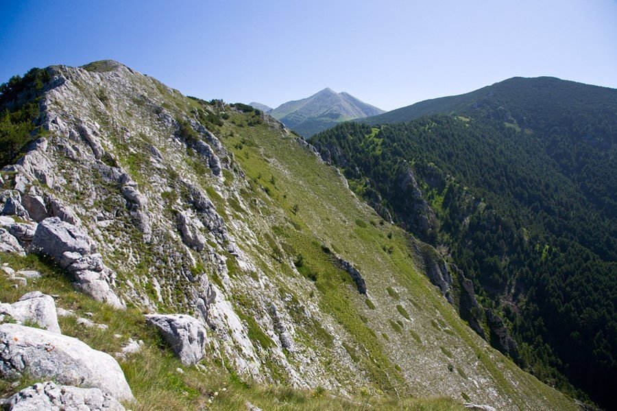 Кратък **рид**, покрит с **клек** и **бяла мура**, го свързва с **връх Конски кладенец**, разположен на изток. От **северозападната му страна** се отделя **стръмният Грънчарски рид**, който служи като **вододел** между реките **Шаралийска** и **Разколска**.