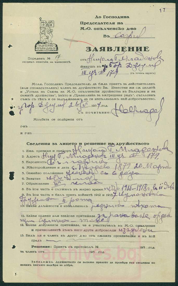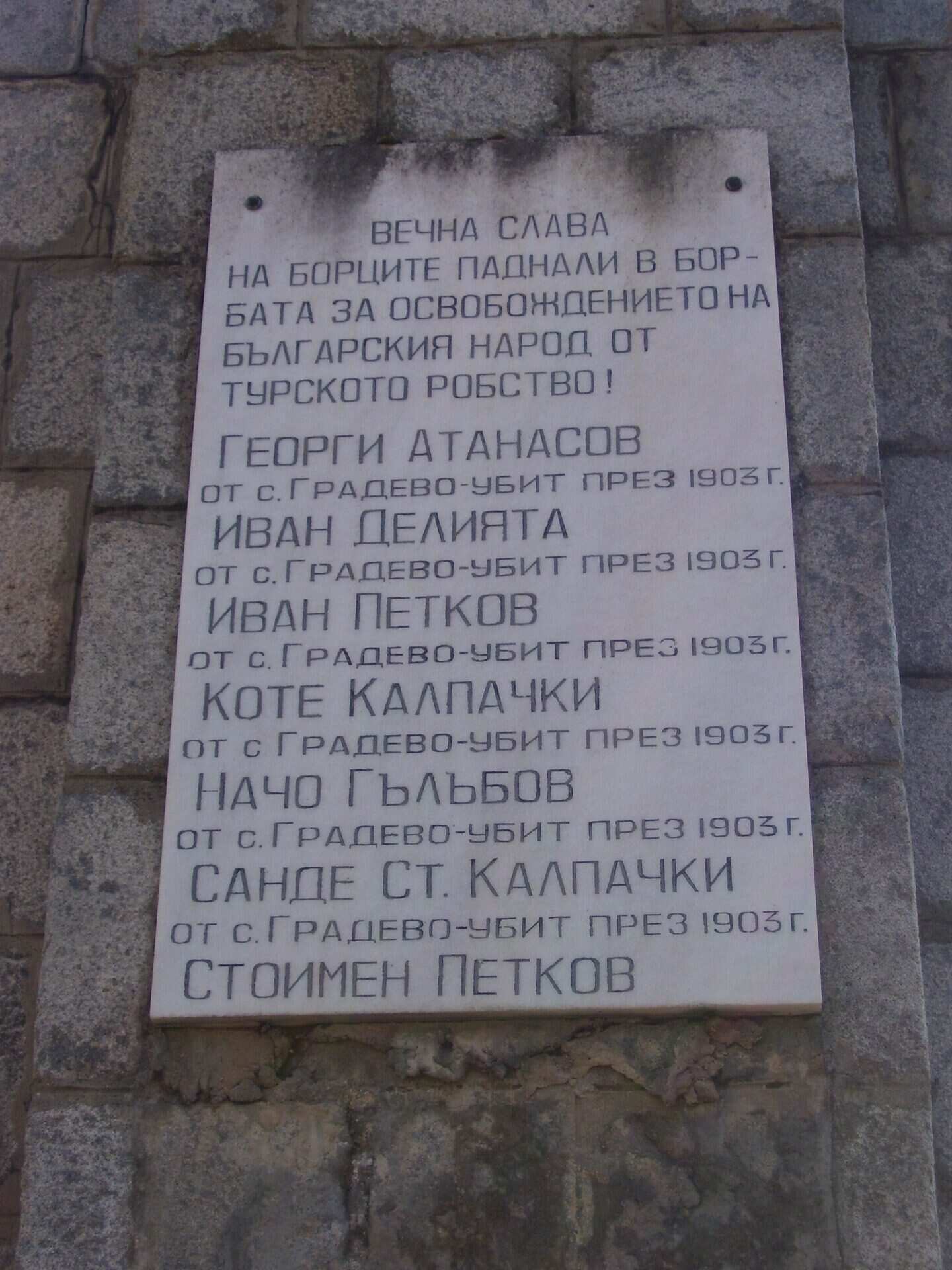 При избухването на Балканската война в 1912 година дванадесет души от Градево са доброволци в Македоно-одринското опълчение .