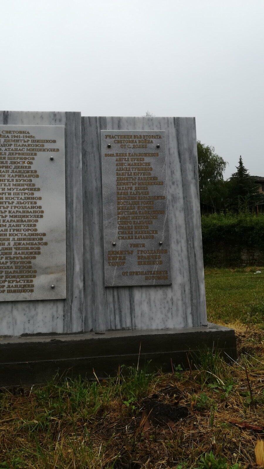 **Мемориал в чест на жителите на село Долен, участвали в освободителните войни.**