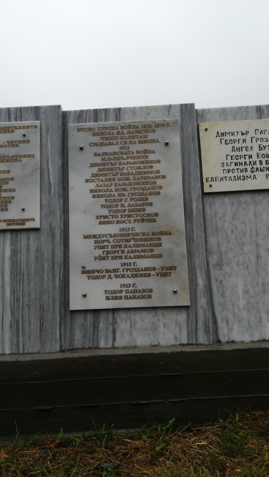 На пет мраморни плочи са изгравирани имената на местни жители – опълченци, четници и антифашисти, които са се били и загинали в: