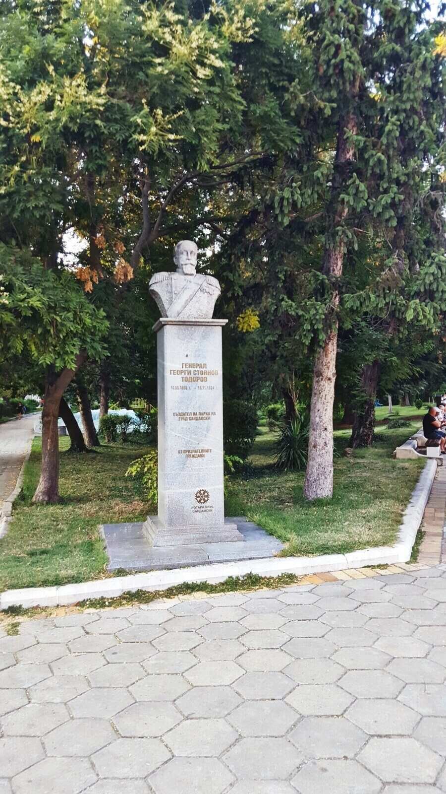 Генерал Георги Стоянов Тодоров е човекът, на когото град Сандански дължи красивия си парк. Паметникът в негова чест е изграден благодарение на средства от местните жители, които искат да отдадат почит. Намира се в непосредствена близост до началото на една алея, веднага след моста. Ако вървите нагоре по пътеката, той ще бъде разположен отляво.