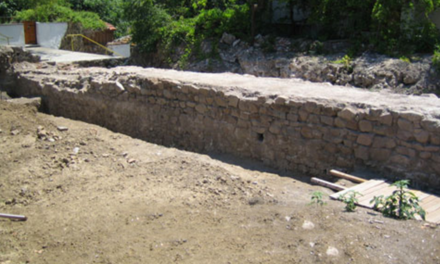 На югозападната страна е била разположена главната порта, охранявана от две бойни кули с височина **12–14 метра**. Стените и кулите са претърпявали многократни достройки, като основната им конструкция вероятно е създадена в края на **V** и началото на **VI век**, по времето на император **Анастасий I (491–518 г.)**.
