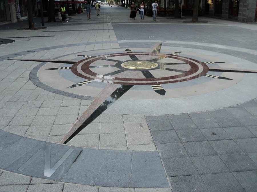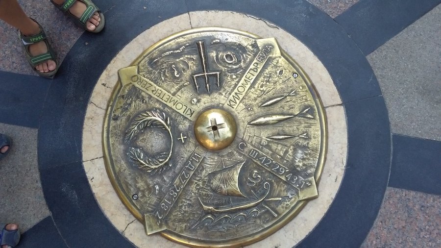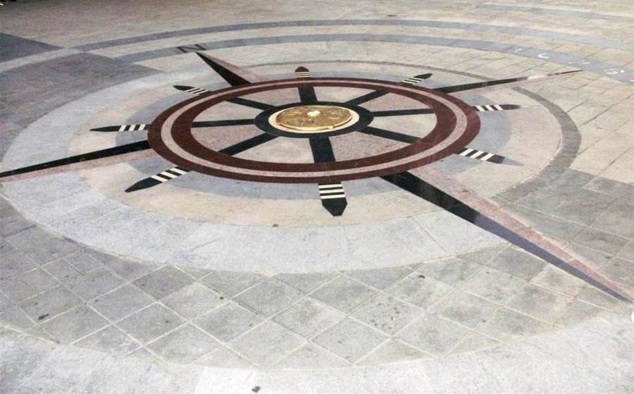 В центъра на Бургас се намира забележителността, известна като "Компасът" или "пъпът на града". Това е точно определено място, което архитектурно маркира сърцето на Бургас. Разположен на главната улица "Александровска", Компасът обозначава нулевия километър (кота 0) и представлява елегантна бронзова плоча с изящни релефни елементи. Той служи като отправна точка за измерване на разстояния в града, включително и за GPS системи.