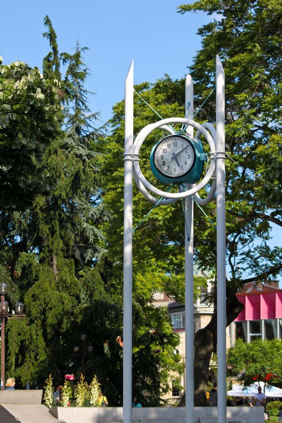 В Бургас един от най-узнаваемите символи е Часовникът, който се намира на кръстовището на улиците "Богориди" и "Александровска". Поставен е в ранните години на ХХ век и оттогава е традиционно място за срещи за местните жители. През 1936 година инженерите Георги Марков и Ангел Гюзелев, след като учили в Европа, поръчали часовник за града от швейцарска фирма. Той бил марка "Фаваж", с три циферблата. Първоначално бил инсталиран на сградата на общината, като се управлявал от часовник-майка чрез електрически импулси, предавани по кабел. По-късно го преместили на другата страна на улицата, точно на противоположната страна на хотел "България", където имало ъглова сграда. На това място останал до 60-те години. През 1963 го демонтирали и го оставили в мазето на дирекция "Приморие" на ул. "Александровска". Часовникът бил спасен благодарение на Стефан Николов, колекционер на над 450 антични часовника. През 1993 той го реставрирал. Оказало се, че оригиналната чугунена конструкция била изгубена и претопена. Заедно с художника Кольо Кехайов създали нова алуминиева конструкция, произведена в завод "Спартак". Сглобяването ѝ отняло 7 месеца. Изчезнал и часовникът-майка, затова Стефан Николов сам създал устройство, което подава импулсите. Днес Часовникът е с оригинални части, освен пилоните и циферблатите, и продължава да бъде място за срещи и истории.