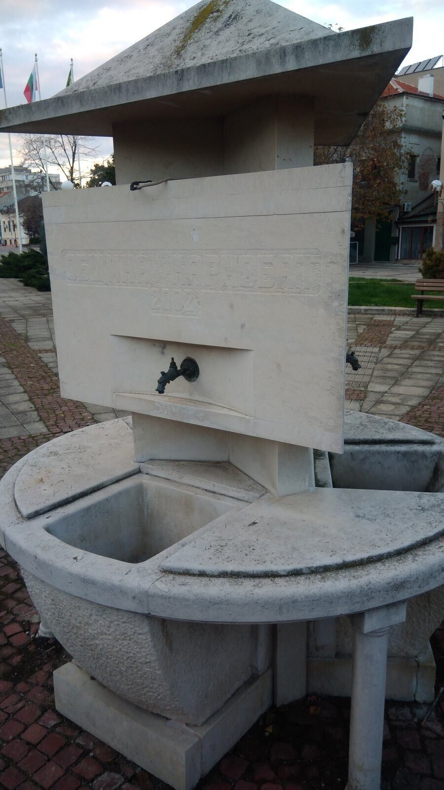 В центъра на един неголям парк, намиращ се до храма "Свети Йоан Богослов", се извисява тристранна чешма, изработена от мрамор. От едната страна има стъпало, за да могат и най-малките деца, идващи в парка, да се напият лесно. Надписът върху нея гласи: Община Карнобат 2002.