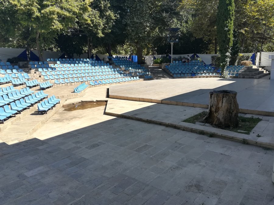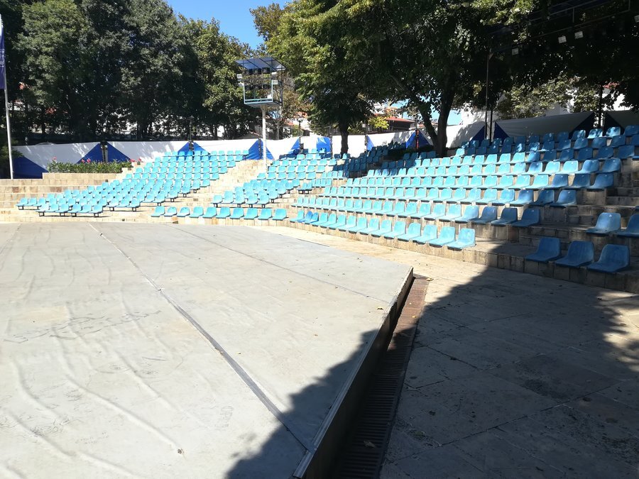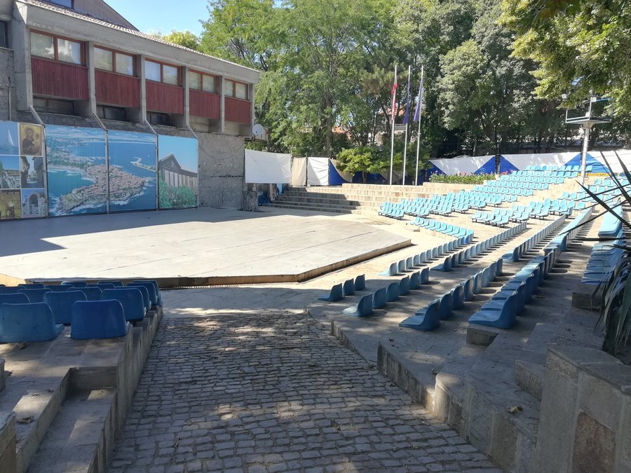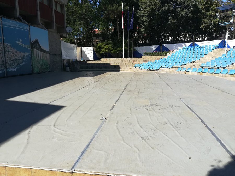 Амфитеатърът беше открит официално на 30 април 2015 година. Може да се достигне директно от парковите пътеки. Строежът е осъществен по Оперативна програма за развитие на рибарския сектор, в рамките на МИРГ "Приморско – Созопол – Царево". Обектът разполага с 390 седящи места. Между редовете са изградени пешеходни пътеки, покрити с естествени каменни плочи. В непосредствена близост до амфитеатъра е изградена и модерна детска площадка, оборудвана със спортни и игрови съоръжения. И двата обекта се намират на територията на общински парк "Света Марина".