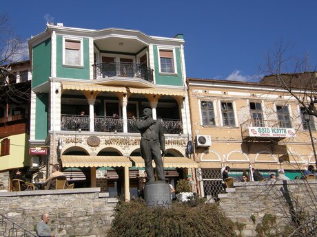 Стефан Стамболов е изтъкнат български лидер, революционер, държавник, писател и публицист. Като активен деец на Вътрешната революционна организация, той организира и води Старозагорското и Априлското въстание през 1875–1876 г. След Освобождението се издига сред либералите и играе ключова роля при Съединението на България, както и при укрепването на държавата след преврата от 1886 г., ограничавайки руското влияние. Паметникът му е разположен при входа на архитектурния ансамбъл „Самоводска чаршия“, открит през 1995 г.