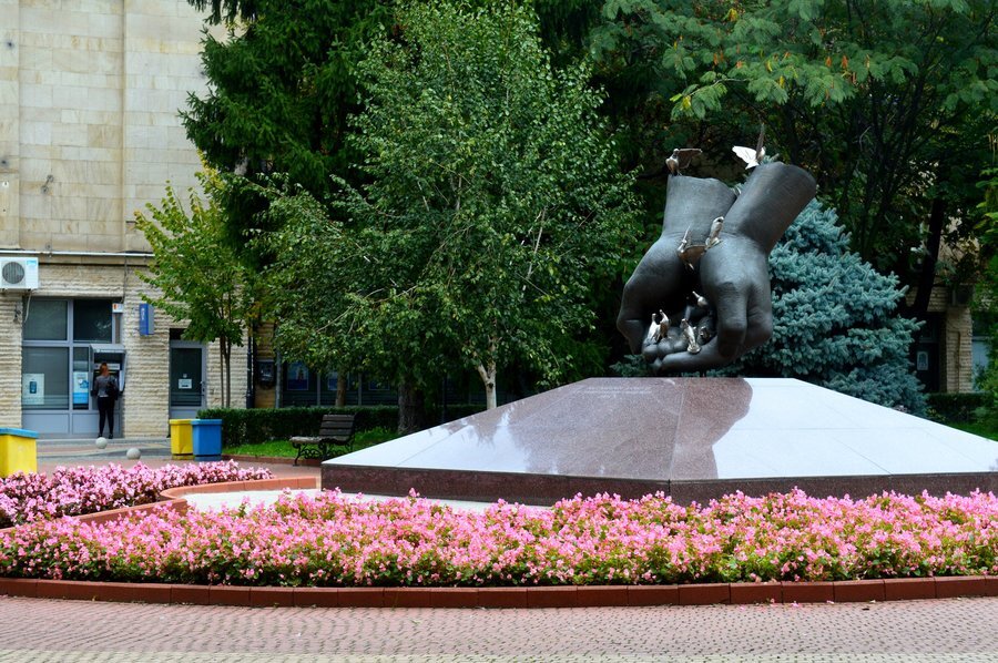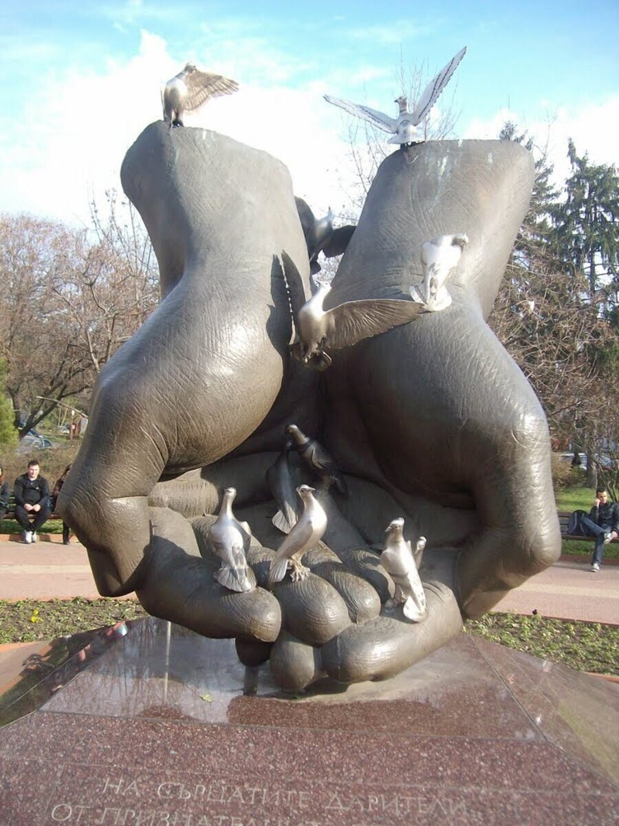В центъра на Свищов, в парка пред Стопанската академия, се издига паметникът на дарителите, изграден през 2005 година. Той е посветен на хората, чиято щедрост е допринесла за просперитета на този крайдунавски град, известен като „Градът на 101 първи неща“. Автори на творбата са скулпторът Георги Чапкънов и архитектът Станислав Константинов. Паметникът изобразява две ръце в жест на дарение, по които седят гълъби. Надписът на монумента гласи: *„На сърцатите дарители от признателни свищовци“*.