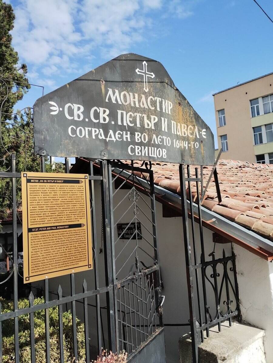 В центъра на Свищов, на улица „Генерал Драгомиров“ №1, се намира манастирът „Св. Св. апостоли Петър и Павел“. Първите му години и начало на историята му не са известни. Настоящият храм е изграден през 1644 година. Неофит Бозвели, борец за самостоятелна българска църква и будител, идва тук през 1813 година, за да създаде килийно училище. Христаки Павлович – Дупничанин е назначен за учител в това училище през 1831 година, повикан от Рилския манастир. Архитектурно представлява комплекс, включващ църква, жилищни постройки и красив, зелен двор. Първоначално храмът е бил еднокорабен с притвор, който е част от основната сграда. По-късно стената, разделяща наоса и притвора, е съборена, а от западната страна е добавен нов притвор. Манастирът, заедно с иконостаса и стенописите си, има статут на паметник на културата. В днешно време е действащ женски манастир.