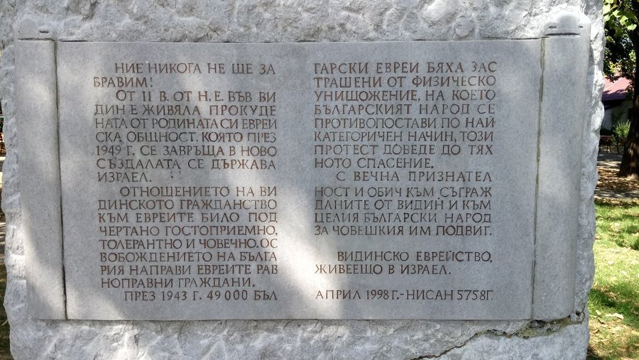Еврейският паметник, познат и като Паметник на благодарността, е разположен в центъра на града, в близост до площад „Бдинци“. Той символизира признателността на българските евреи, като разказва историята на еврейската общност във Видин и отдава почит за нейното спасяване през 1943 година.