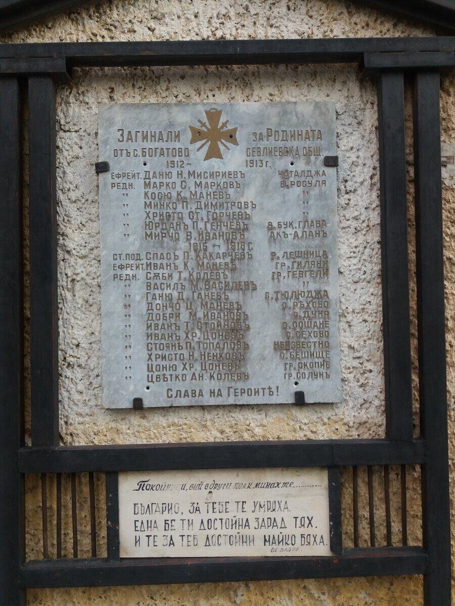 Мемориална дъска с имената на загиналите жители на село Богатово, община Севлиево, по време на войните от 1912–1913 г. Разположена е пред входа на читалище „Отец Паисий – 1922“, близо до централната част на селото и храма „Света Параскева“.
