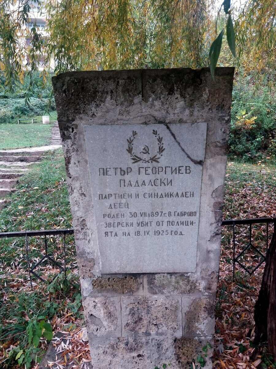 Петър Георгиев Падалски, синдикален и партиен деец, е роден в Габрово на 30 Юли 1897 година. Животът му прекратява жестоко на 18 Април 1925 година, когато е убит от полицията. Неговият паметник е разположен в парка близо до автогарата на града, точно до западния вход на Габрово.