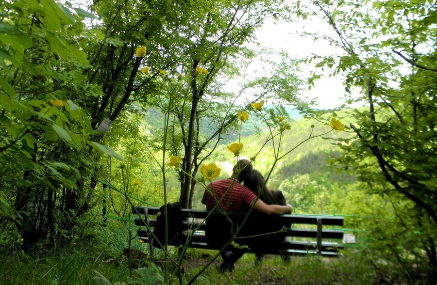Пейката на любовта се намира на втората тераса измежду трите, предлагащи панорамни гледки. От Дряновския манастир се достига до нея само за десет до петнадесет минути. При входа на пещера "Бачо Киро" се изкачвате нагоре по стъпалата, изсечени в скалата, докато стигнете до пътека. След това завивате наляво, като има указателни табели, и продължавате по приятна сенчеста пътека. Ако посетите мястото в края на август, през септември или октомври, ще се насладите на гледката на красиви диви циклами, които покриват гората като килим. На върха ще забележите дървена беседка — малко преди нея завивате наляво и надолу, където ще откриете Пейката на любовта. Мястото е обновено и подобрено от младежкото сдружение МОГА-Дряново през лятото на 2013 година.