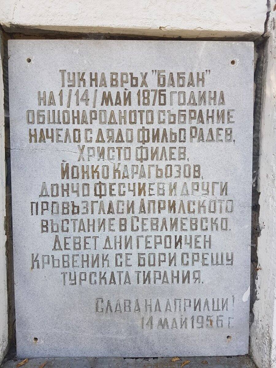Бабан е връх в Стара планина, разположен близо до село Стар Кръвеник, в района на Априлци. От него извира река Слатина – ляв приток на Граднишка (Боазка). Той е известен като второто Оборище на България. На 1 май 1876 г. от Бабан е подаден сигнал за началото на Априлското въстание в Северна България, включващо бунтовете в Ново село, Кръвеник и Батошево. В подножието му, сред вековни гори, се събират около 250 жители на Кръвеник, а събранието е открито от Фильо Радев Миленов. През 1956 г. на върха е издигнат паметник в чест на героите от въстанието. Всяка година на 11 май тук се провежда традиционен събор в памет на борците за национална свобода.