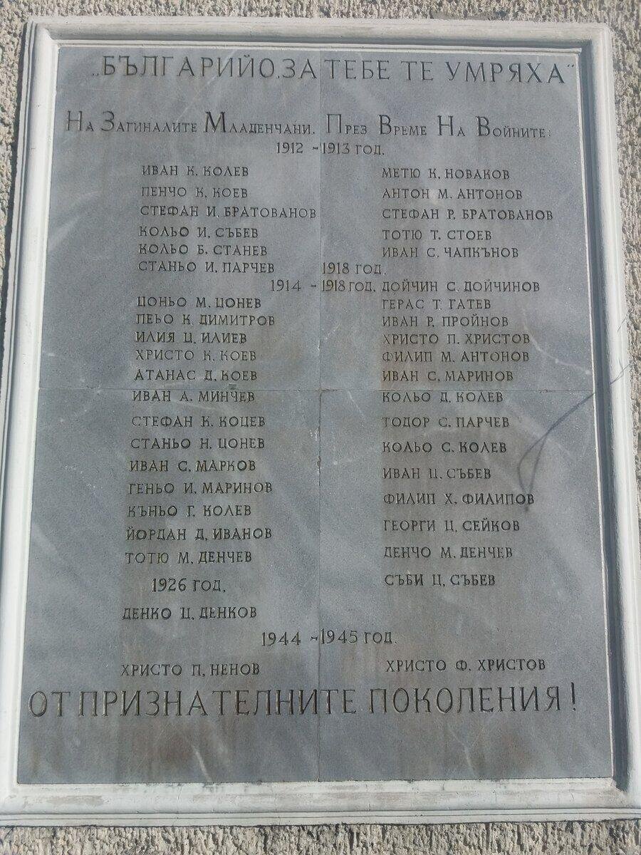 Паметна плоча в чест на загиналите Младенчани - с. Младен