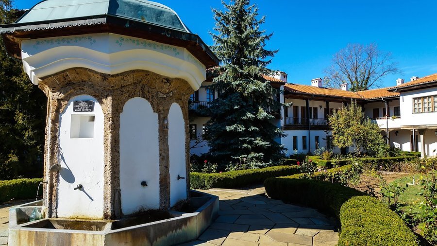 През 1868 година в двора на манастира известният самоук строител Колю Фичето изгражда осемчучурна каменна чешма, която се съхранява и до днес и е една от най-забележителните негови части. Смята се, че Фичето е автор и на красивата каменна ограда, както и на костницата до църквата.