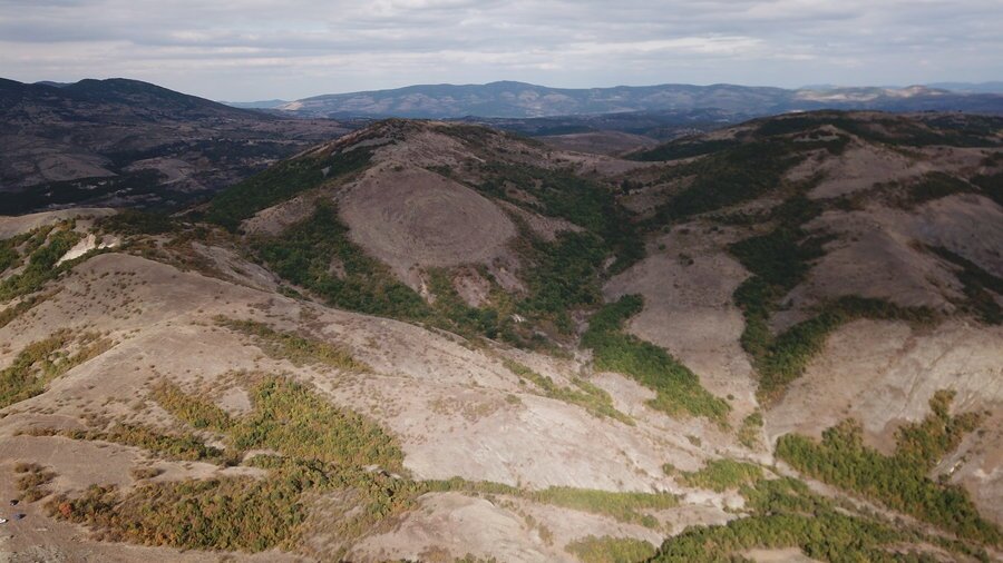 Конструкцията покрива изцяло южната страна на хълма, а наблизо се издига крепостта-светилище "Калпаки асар" – място, свързано с предполагаеми тракийски религиозни обреди. При по-внимателен поглед се открива преднамерено подредени камъни, образуващи силует, напомнящ човешко лице. Според изследователите, това най-вероятно е стилизирано изображение на Слънчевия бог.