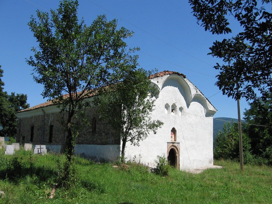 **Църквата е изградена през 1863 година, според предания, от майстор Лазар. Сградата е изпълнена от камък, с масивен подпокривен корниз, който от западната страна образува три арки. На запад и север са разположени два входа, украсени с каменни рамки и релефни декорации. Иконите в иконостаса са дело на художника Никола Образописов. Храмът е обявен за архитектурен паметник на културата.**