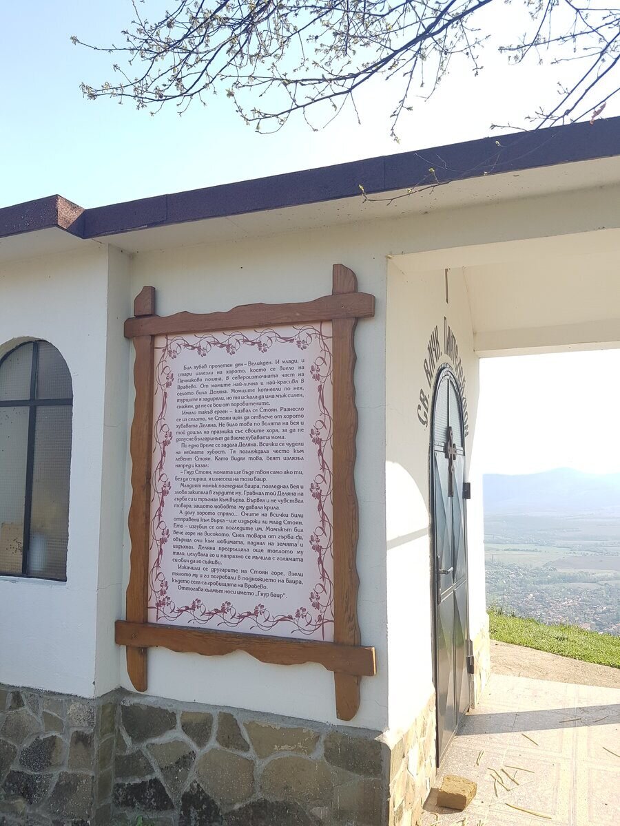 В района на Гяур баир (разположен на север от село Врабево), с финансовата подкрепа на фармацевтичната компания "Софарма" АД, е построен храмът "Свети Панталеймон" и е поставен монументален 16-метров кръст. Вътре параклисът е украсен с красиви стенописи, изработени от известния живописец Красимир Макраса. От мястото се открива впечатляваща панорама към сърцето на Стара планина.