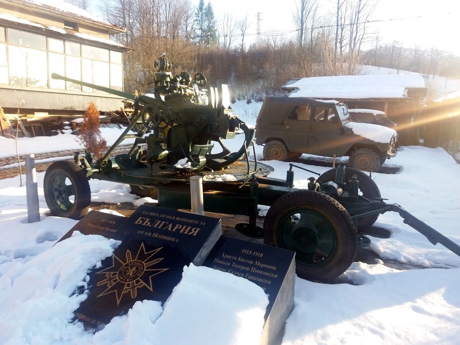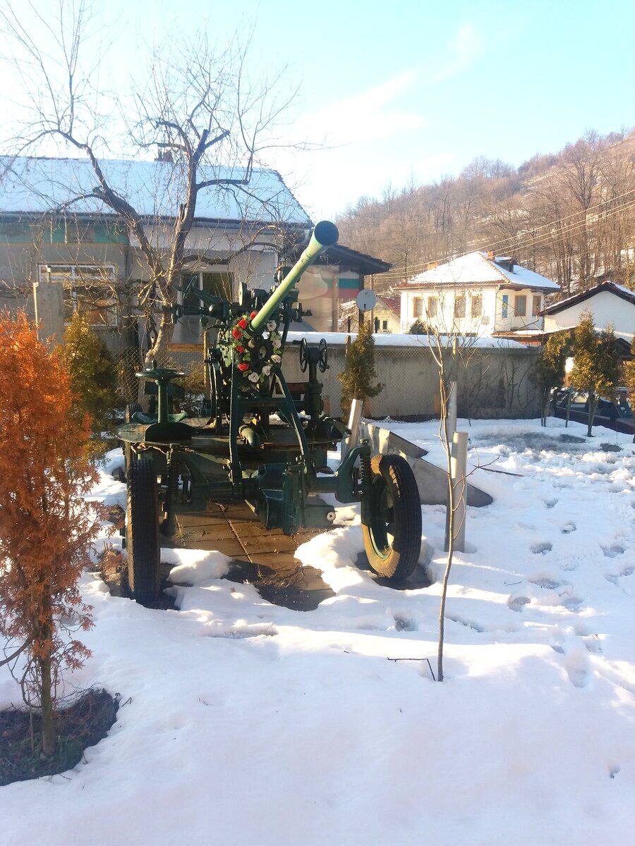 В кв. "Попишка" в град Троян е изложен масивен 37-милиметров зенитен снаряд по съветски образец от 1939 г. Той е подарен на общината от Министерството на отбраната. Този тип оръжие е било въведено във въоръжение на българската армия след 1945 г. Обектът е обезопасен и предлага възможност за спокойно сядане и забавни фотографии, които да запазят спомени от посещението ви в Троян.
