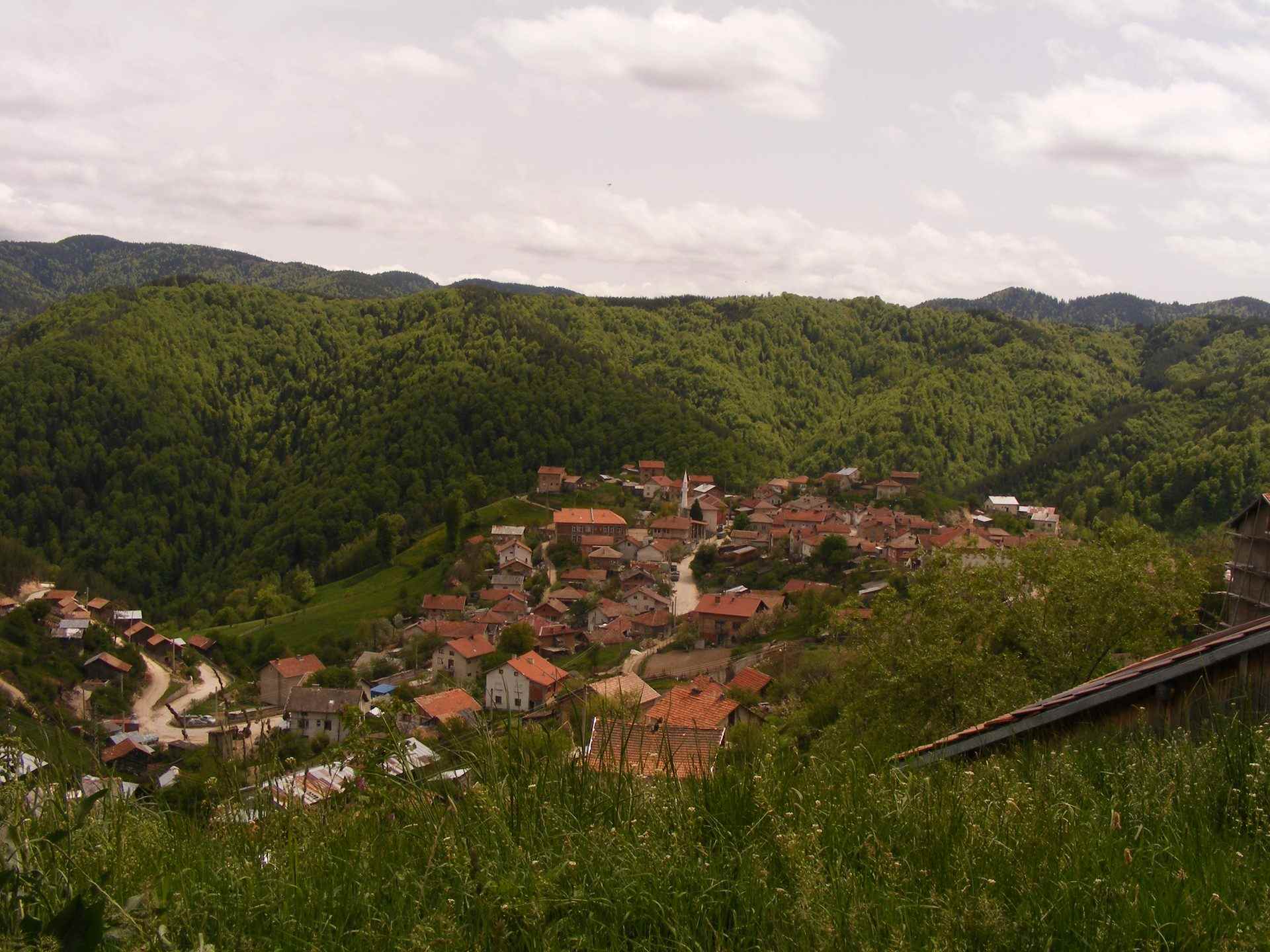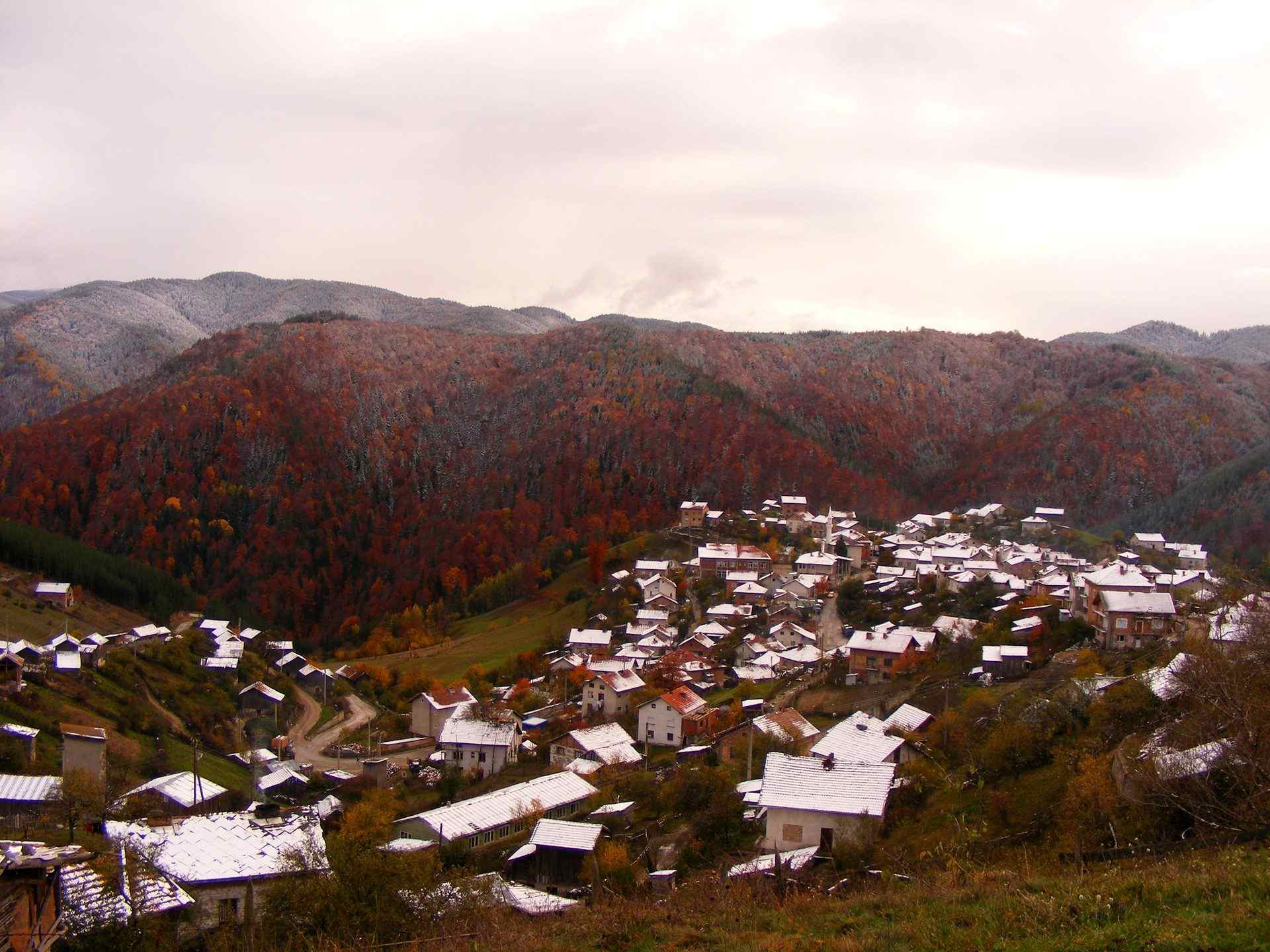 Панорамна снимка на Грашево през пролетта Панорамна снимка на Грашево през есента Панорамна снимка на Грашево през зимата