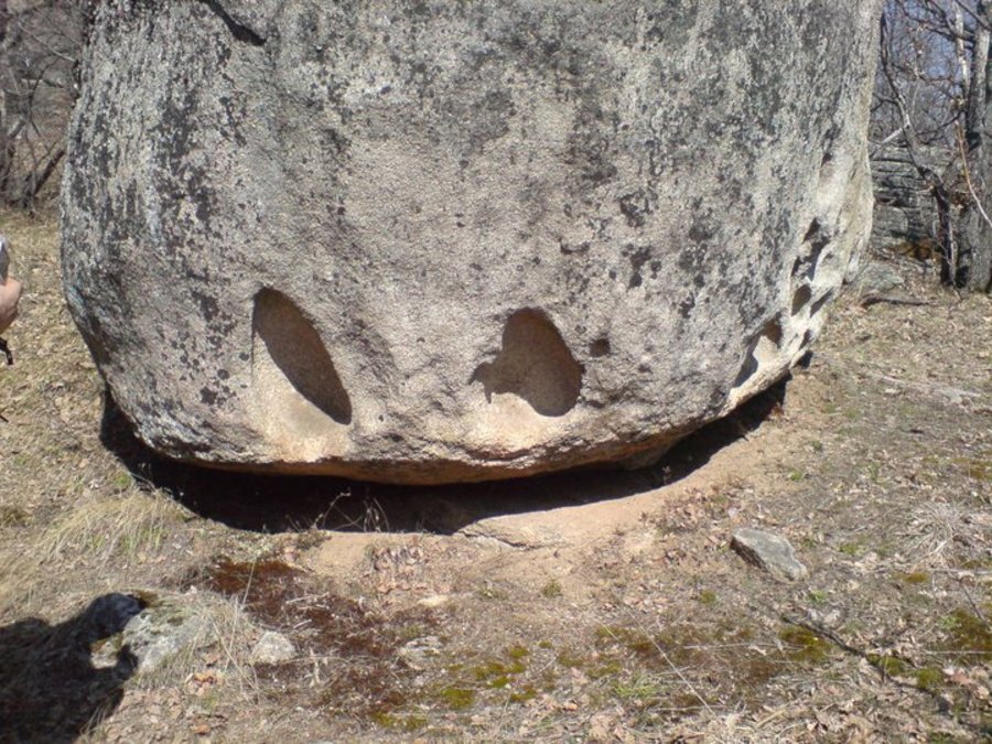 Южно от основния масив, на заравнена скална площадка, стои изправен каменен стълб, наречен менхир. Скалите около него също са оформени с изкуствени вдлъбнатини. Учените смятат, че на семантично ниво менхирът е един от най-древните символи на мъжествеността и на Слънцето. Счита се също, че менхирите са сред най-старите астрономически инструменти, използвани за наблюдение на небесни тела и за определяне на смяната на сезоните.