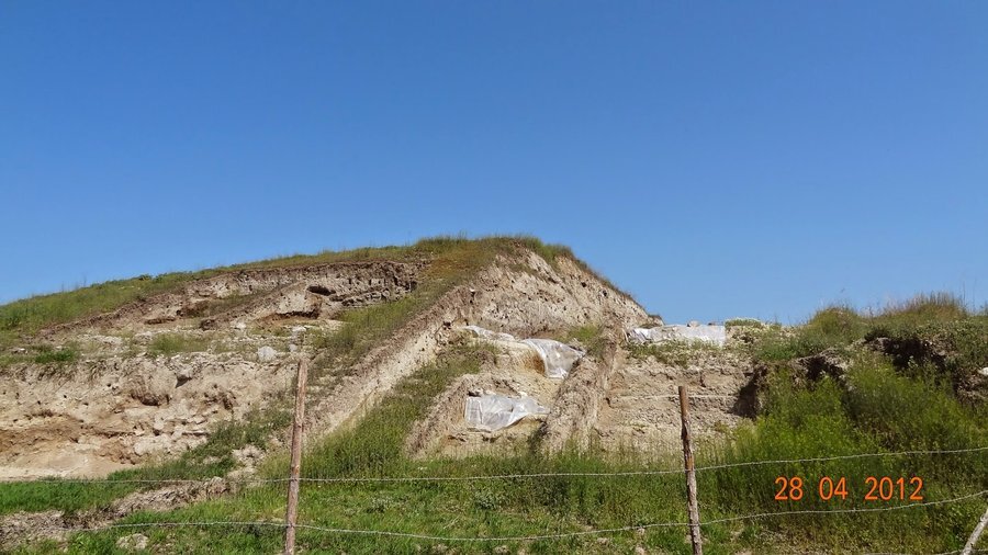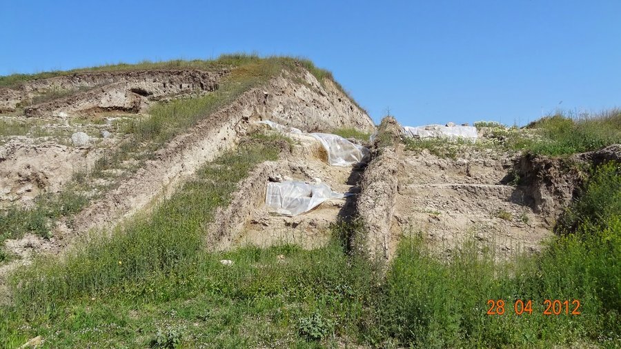 През **4750–4650 г. пр. Хр.** на най-високата точка, защитена от изток от старото корито на река Тополница, е изградена **мощна отбранителна стена**. Тя е **широка 5 м**, запазена на височина **2,5 м**, но се смята, че първоначално е била **висока над 5 м**. Изработена е от **уплътнена пръст с чакълести слоеве** и покрита с жълта глиняна мазилка. Простира се на **25 м**, а пред нея е имало **ров с ширина над 5 м** (частично разрушен от по-късен античен ров).