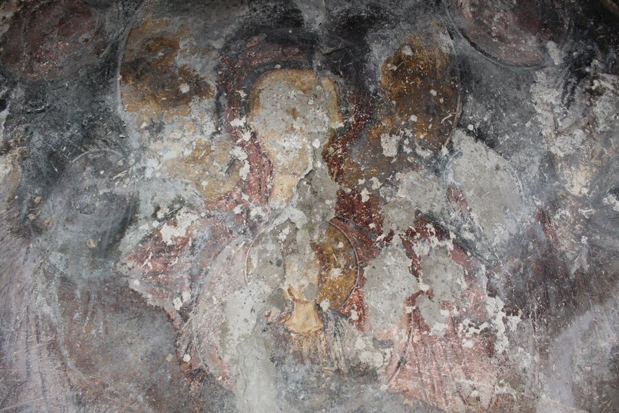 Цялата вътрешност на средновековния храм е била изписана, но до днес се е запазила само живописта в апсидата. В горната част, в конхата, е изобразена „Богородица Ширшая“ с медальон на „Христос-дете“ на гърдите. Под тях има вече почти неразличими изображения на Великите църковни отци. Стилът и цветовата гама показват специфика, разкриваща съществуването на местна художествена школа, която според Д. Джонова е работила през XVI–XVII век.