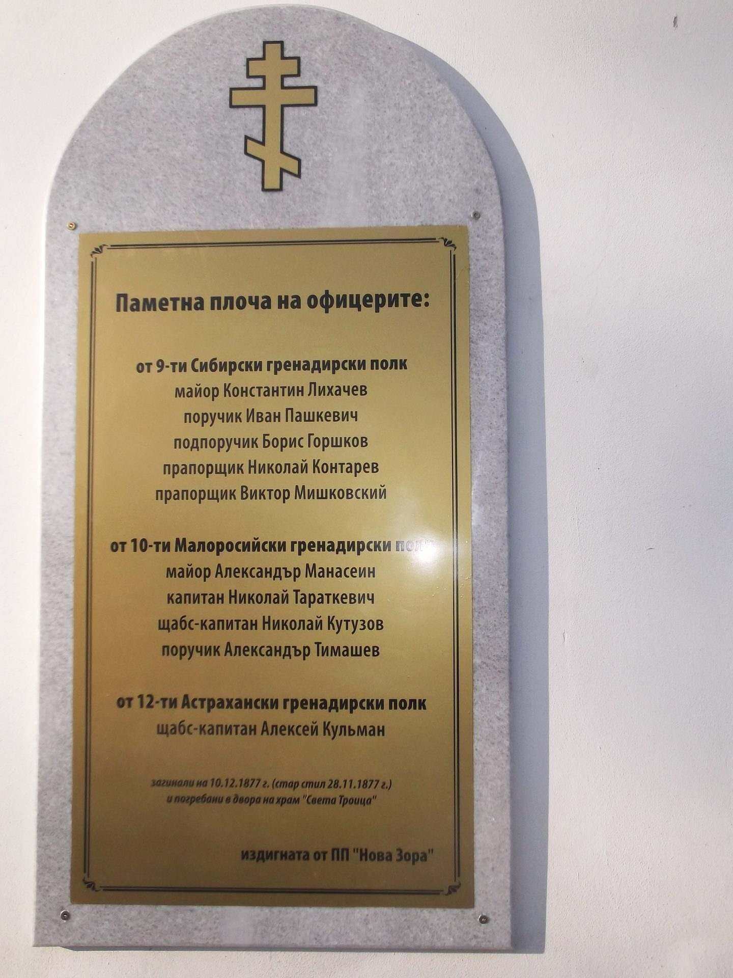 След битката на 10 декември 1877 същият свещеник споменава, че на 12.12.1877 г. северно от олтара на църквата са погребани в общ гроб 10 млади руски офицери, починали от получените рани в битката: "звратившись от Копаной Могилы в Нетрополь, я приступил к печальному обряду погребения павших героев, офицеров нашей дивизии. По тесноте болгарской церкви обряд совершался на площадке около церкви: наступал вечер, тихий, ясный, безоблачный... С каждого бивуака тронулись к церкви печальные процессии; каждый полк нес своих героев-мучеников... Грустно-торжественные звуки погребальных маршей в одно и то же время раздались с разных сторон и огласили всю окрестность... К хору наших певчих присоединилось много любителей-офицеров, пение вышло звучное, торжественно-печальное; все стояли с зажженными свечами в руках: наступала уже ночь, ясная, звездная. Картина была необыкновенно грустная и вместе торжественная! И среди всего этого вдруг раздается поражающий душу церковный гимн: „Плачу и рыдаю, егда помышляю смерть и вижу во гробех лежащую, по образу Божью созданную, нашу красоту, безобразну, бесславну, не имущую вида...“, а тут пред вашими глазами лежат распростертыми на земле десять трупов молодых юношей, за три дня назад полных жизни и силы, а теперь бездыханных, страшно обезображенных, с лицами действительно неимущими вида. Впечатление было потрясающее! Слезы и рыдания сделались общими!.. То плакали герои, оставшиеся в живых, над трупами героев-друзей безвременно погибших в битве.., Четверо положены в гробах, сколоченных из теса, а остальные прямо на земле, покрытые только простынями..."