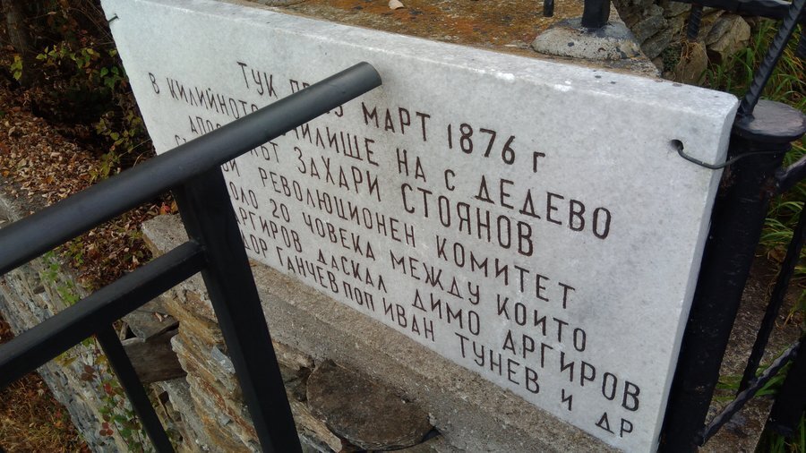 В края на март 1876 г. в село Дедево, в местното килийно училище, апостолът на свободата Захари Стоянов създава таен революционен комитет. Сред неговите членове са Григор Аргиров, учителят Димо Аргиров, дядо Тодор Ганчев, свещеник Иван Тунев и още около 20 души. В памет на това събитие на оградата на църквата *"Св. Атанасий"* – в чийто двор е било училището – е поставена спомен-плоча.