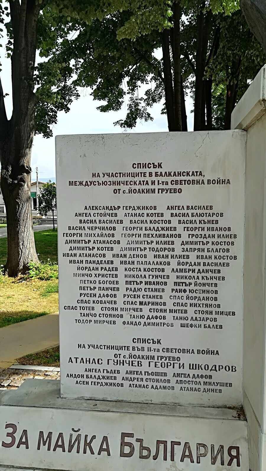 Селото Йоаким Груево е родното място на полковник Иван Даев – първият командир на авиобаза „Равнец“. Той загива на 29 септември 1994 г. по време на учебен полет, изпълнявайки пилотаж на ниска и крайно ниска височина със самолет МиГ-29 (борд 25).