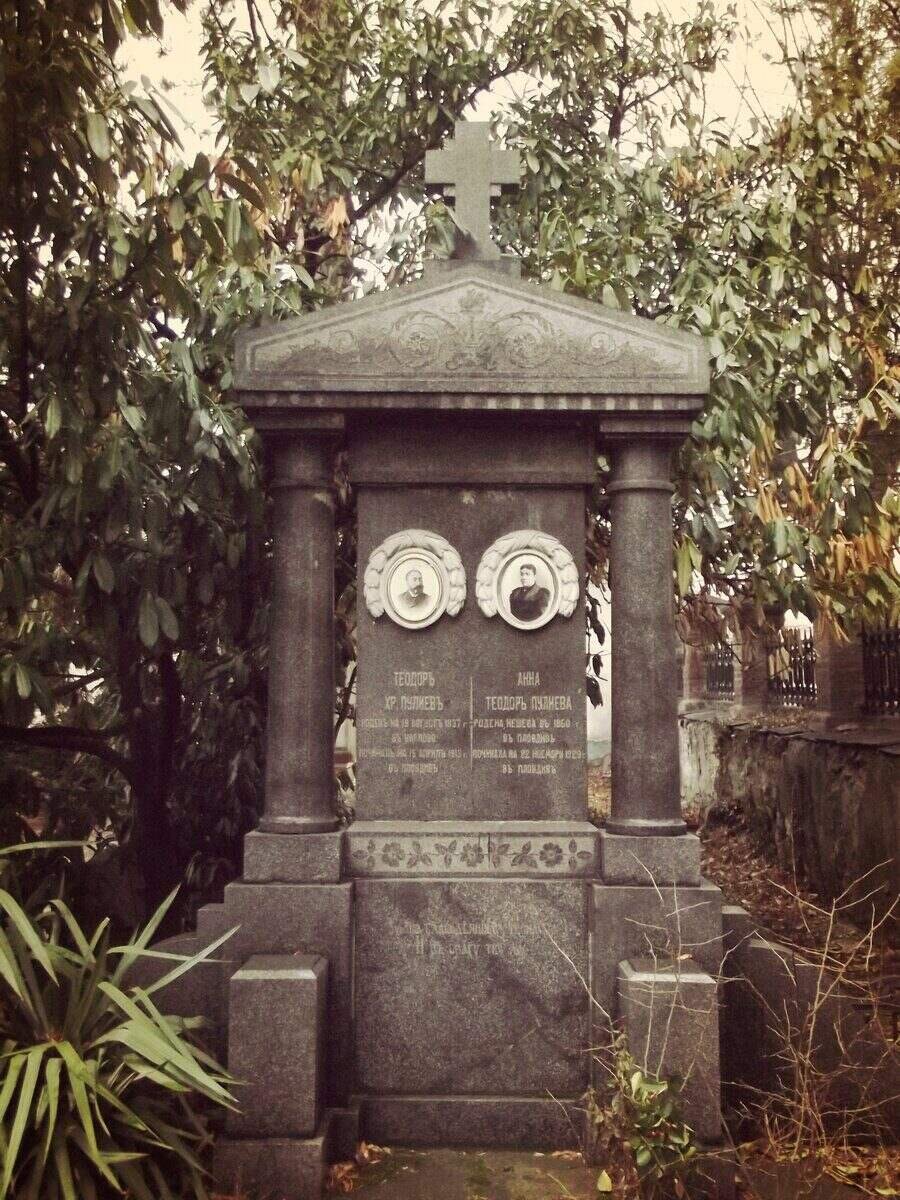 Църквата "Успение на Пресвета Богородица" в Карлово е обновена през 1851 година. На църковния двор са разположени гробовете на известните карловски дарители Тодор и Ана Пулиеви. Тодор Христов Пулиев (август 1839 – 15 април 1913) е търговец, роден в Карлово. Образованието му започва при Райно Попович в родния му град, а после учи при Найден Геров в Пловдив. Две години посещава гръцко училище в Букурещ. Братовчед е на Христо Георгиев. Завършва търговско образование във Виена. Занимава се с търговия в Галац. След Освобождението се завръща в Карлово, а впоследствие се мести в Пловдив, където умира. Останките му са пренесени в Карлово и погребани в църквата "Св. Богородица". Ана Пулиева (неизвестна дата на раждане – 22 ноември 1929) е общественичка, родена в Карлово. Почетен член е на женското благотворително дружество "Възпитание" и на други благотворителни организации в Пловдив. Умира в Пловдив. Тодор Пулиев завещава почти цялото си богатство на Карлово с благотворителна цел.
