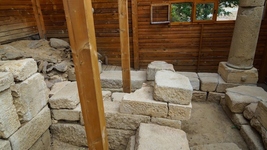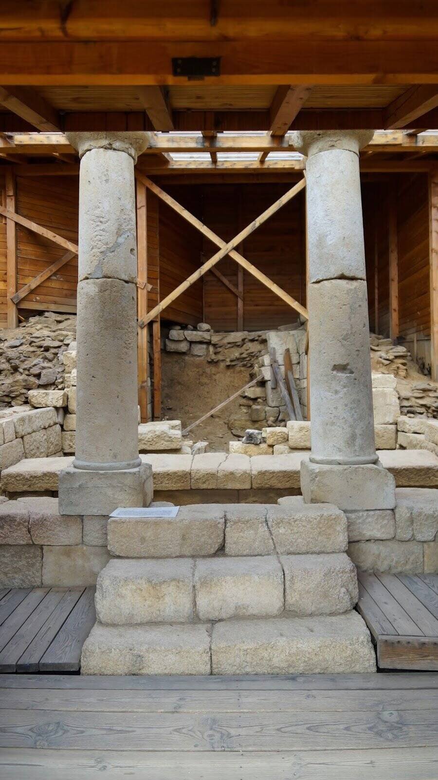 В могилата "Хоризонт", която е включена в тракийския храмов комплекс "Старосел", се намира единствената в Тракия колонада, съставена от десет колони. Шест са разположени отпред, а по две стоят от всяка страна, образувайки правоъгълна конструкция, изнесена пред самата могила. Всяка колона стои на база, състои се от два барабана и завършва с капител в раннен дорийски стил. Пространството между челните и страничните колони прилича на напречен коридор, но всъщност е служело като просторно преддверие, достъпно през три стъпала и вход между средните колони. Оттам, през по-малко предверие, се достига до главната камера. През средата на IV век преди Христа в храма е погребан обожествен тракийски владетел, което го превръща в мавзолей. До владетеля е положен и неговият кон. По-късно, поради религиозни или политически причини, светилището е осквернено, ограбено, съборено и засипано. От дрехите и предметите, с които е погребан владетелят, са запазени само петнадесетина златни пластини от броня, дванадесет бронзови върха за стрели, сребърни пръстени и фрагменти от керамични съдове.