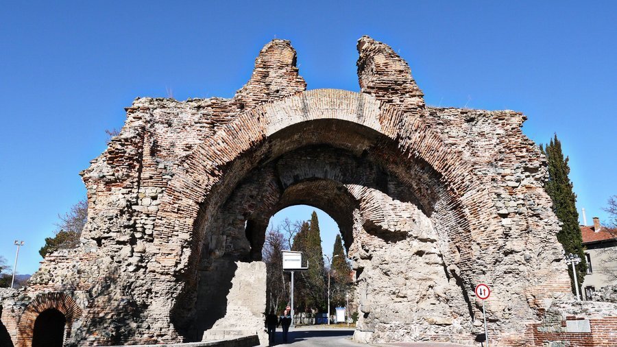 **Южната крепостна врата** е основният вход на античния римски град **Диоклецианополис**. От нея е започвал пътят към **Филипополис** (днешен Пловдив) – ключовият административен град в римска **Тракия**. Оригиналната порта е била висока **13 метра**, а името ѝ идва от нейния вид в началото на **20 век**, когато е била разделена и наподобявала **две камили, гледащи една към друга**. На това място през **1882 г.** **Иван Вазов** е създал безсмъртното стихотворение **„Отечество любезно, как хубаво си ти!“**.
