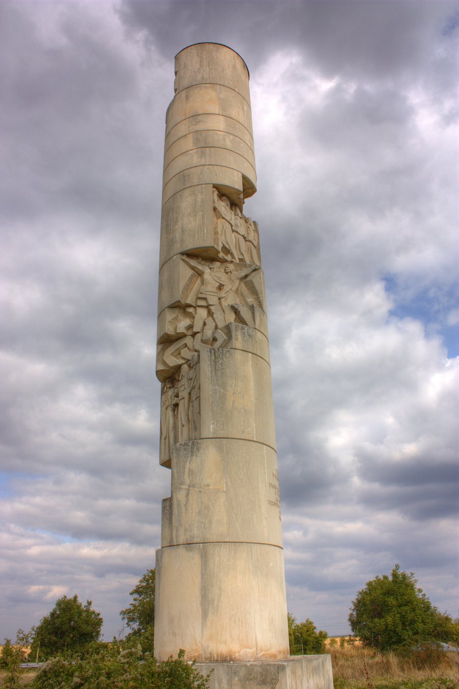Монументът е разположен на шосето между Велико Търново и Русе, близо до отклонението за село Иваново. На спираловидната му конструкция са изрязани ключови епизоди от националното минало. На върха на стълба е поставен символът на СССР – червена звезда със сърп и чук. Авторският колектив включва ваятеля Георги Радулов, архитект Белчо Петров и строителен майстор Борис Лозанов. (Запазих всички съществени детайли – местоположение, исторически елементи, символ на върха и имената на създателите, но използвах по-разнообразен речник и леко промених структурата за по-естествен звук.)