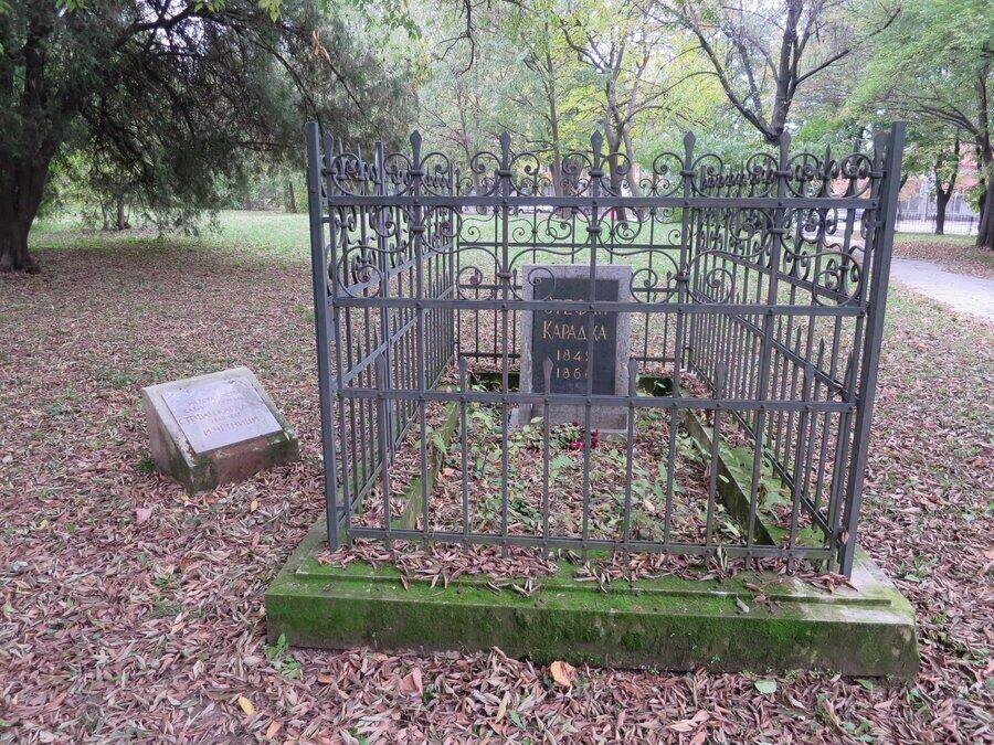 На това място е погребан Стефан Караджа, обесен по време на Османското владичество. Баба Тонка отбелязва неговия безименен гроб със символ и по-късно изважда и запазва черепа му, създавайки основата на една от най-известните български легенди. В същия парцел са положени и участници в Априлското въстание от 1876 г. След Освобождението Баба Тонка обединява костите на загиналите четници в обща гробница заедно с тези на Караджа. Останките на 14 души са съхранени в 12 дървени ковчежета, подредени кръстообразно в тухлена гробница. Според Димитър Ведър това става през 1883 г. По нейно настояване мястото е оградено с метална решетка и е издигнат мраморен паметник. По-късно, при изграждането на Пантеона, останките са пренесени там.