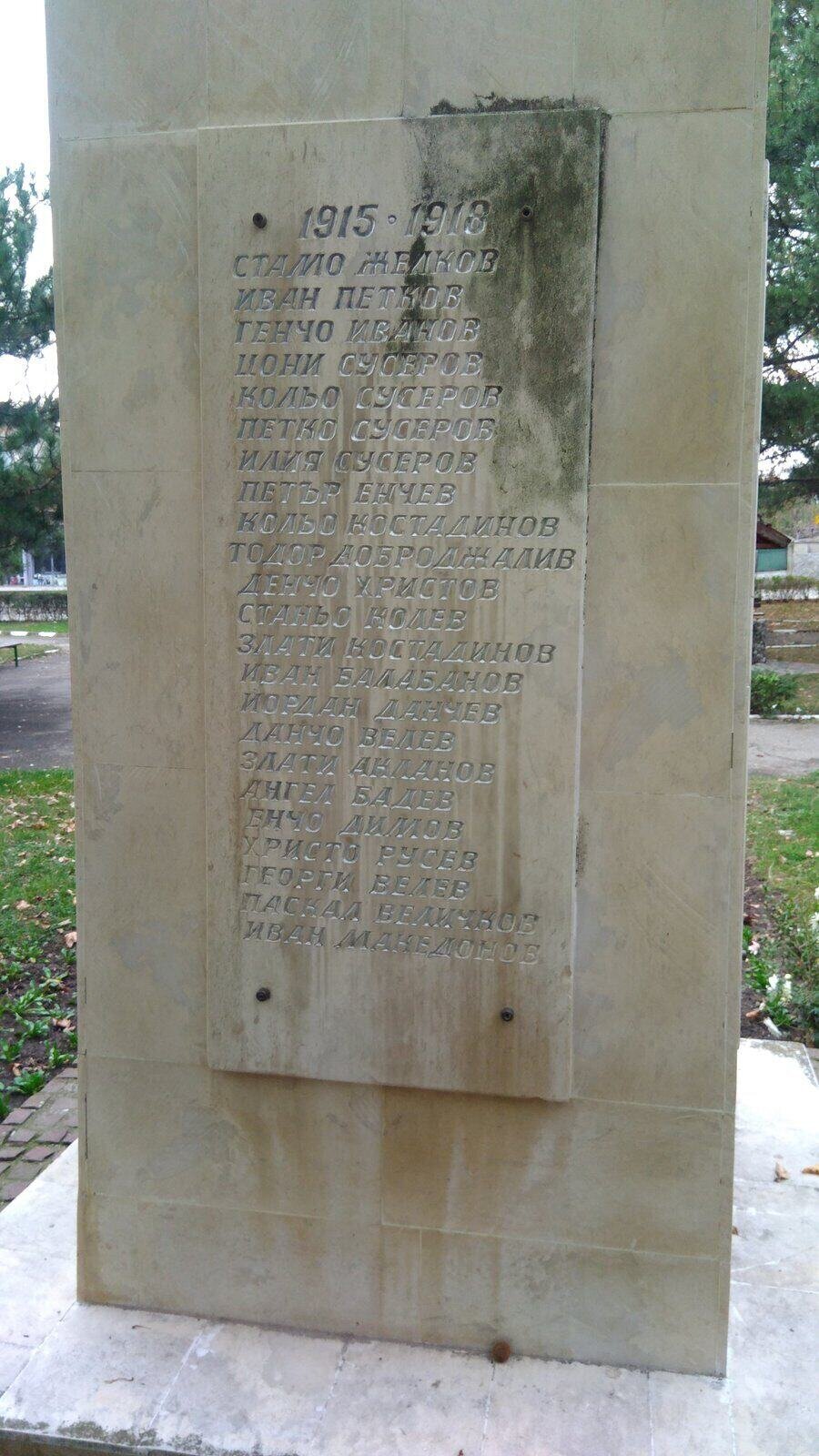 Паметникът е разположен в сърцето на селото. Изграден е през деветдесетте години на миналия век. Той е посветен на загиналите във войните за национално освобождение и защита на родината: Руско-турската война (1877–1878), Балканската война (1912–1913), Първата световна война (1915–1918) и Втората световна война (1944–1945). На монумента е изсечен надпис: *„Този, който загине в бой за свободата, не умира…“*, следван от годините на конфликтите и имената на загиналите.