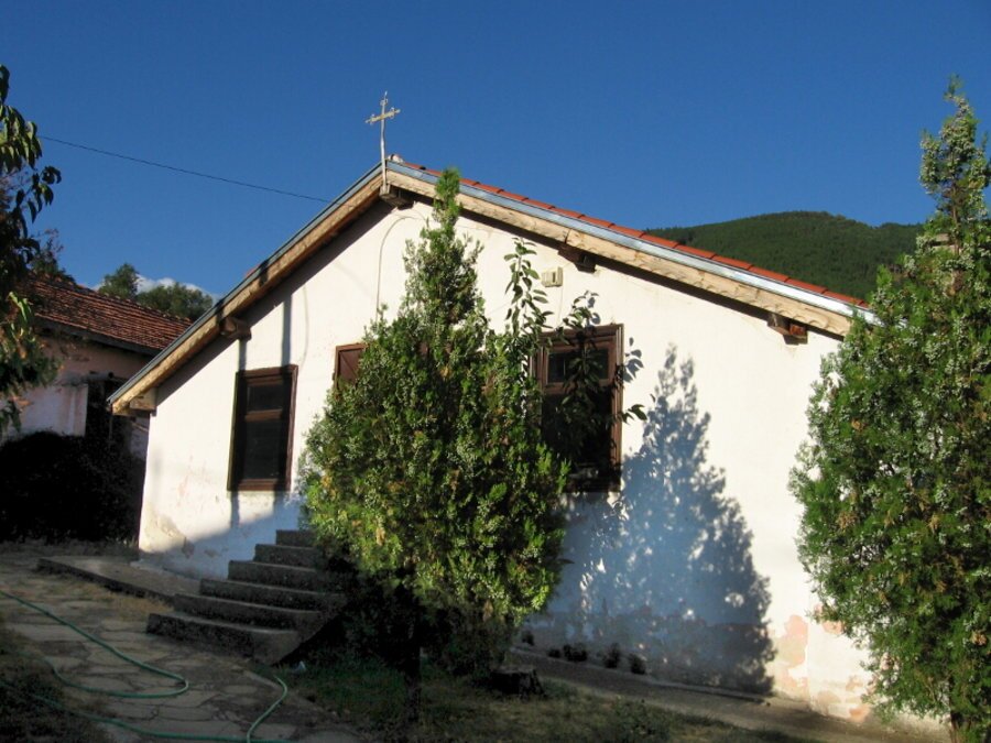 **Архитектурно**, храмът е **еднокорабен, с една апсида и частично вкопчван в терена**. Входът му е от **южната страна**, а **двускатният покрив** е удължен на юг, образувайки **навес**. От **западната страна** е добавена **емпория** (женско отделение). Сградата е **здрава и масивна** по конструкция.