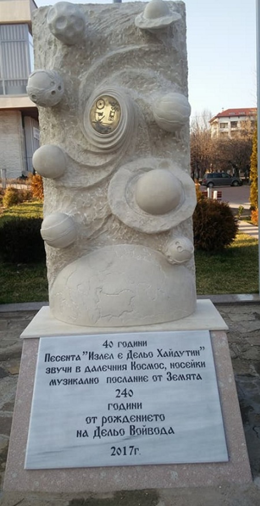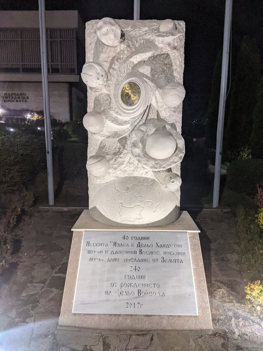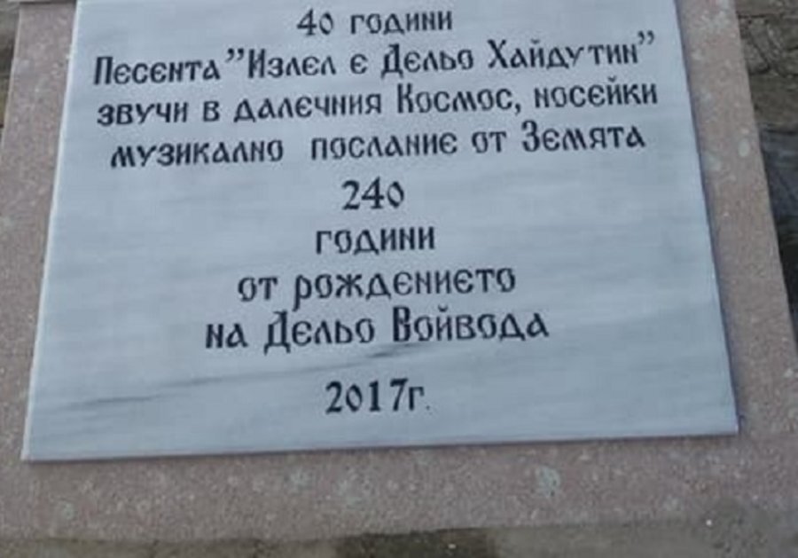 Песента "Излел е Дельо хайдутин" вече е вечно запазена, изгравирана върху каменен паметник в Златоград. Монументът е масивна, футуристична конструкция, чиято предна част изобразява Земята сред други планети в космоса. В сърцето на композицията е вграден диск, идентичен с този, изстрелян в Космоса преди четири десетилетия от мисията Вояджър.