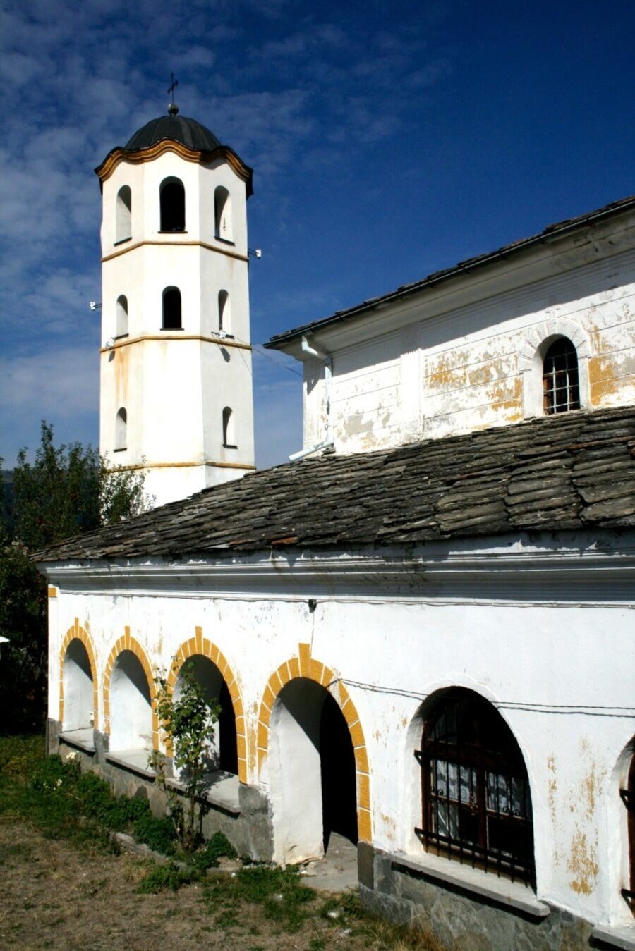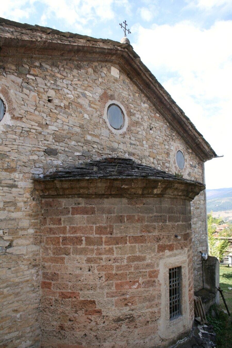 Църквата е построена през 1834 година, но преди това местните мюсюлмани проявяват съпротива, поради което издаването на разрешение отнема няколко години. Конструкцията е трикорабна псевдобазилика с една апсида. Според одобрените документи, сградата е с дължина 25 метра и широчина 15 метра, покрита с трискатен покрив. Нартекс-притвор с десет арки обгражда северната и западната страна, придавайки ѝ внушителен външен вид. Целият двор, включително камбанарията, е ограден с наддвуметрова стена. Камбанарията е издигната през 1894 година, но по неясни причини има поставена плоча с годината 1864. През 1928 година на нея е монтиран часовник за градско време. С пет етажа тя е най-високата в централните Родопи. Основата ѝ е квадратна и стабилна, а в горната си част се превръща в осемстенна. Иконите са впечатляващи, като част са дело на Захари Зограф, а други са рисувани от майстори от Одрин и Асеновград. Иконостасът е изработен от местни дърводелци в стил "овчарска дърворезба". Сводовете са изписани в средата на XIX век от неизвестен автор, вероятно от Одринската художествена школа, който притежава високо майсторство и богословски познания, и е подпомаган от втори зограф – негов ученик. Вторият етап от стенописите е от 60-те и 70-те години на същия век, изпълнен от друг майстор със солидни умения както в живописта, така и в богословието. От 1967 година църквата е обявена за недвижима културна ценност с местно значение и художествена стойност. Посещението е възможно след предварителна уговорка в кметството, по време на големи религиозни празници, както и през уикенда.