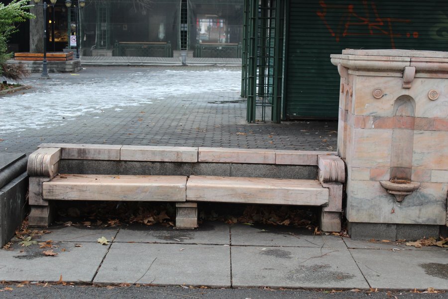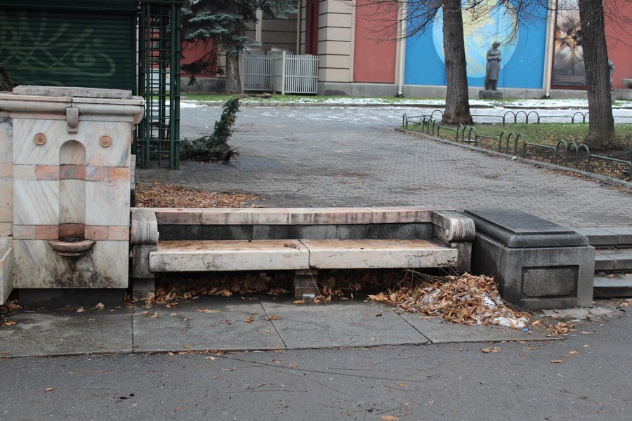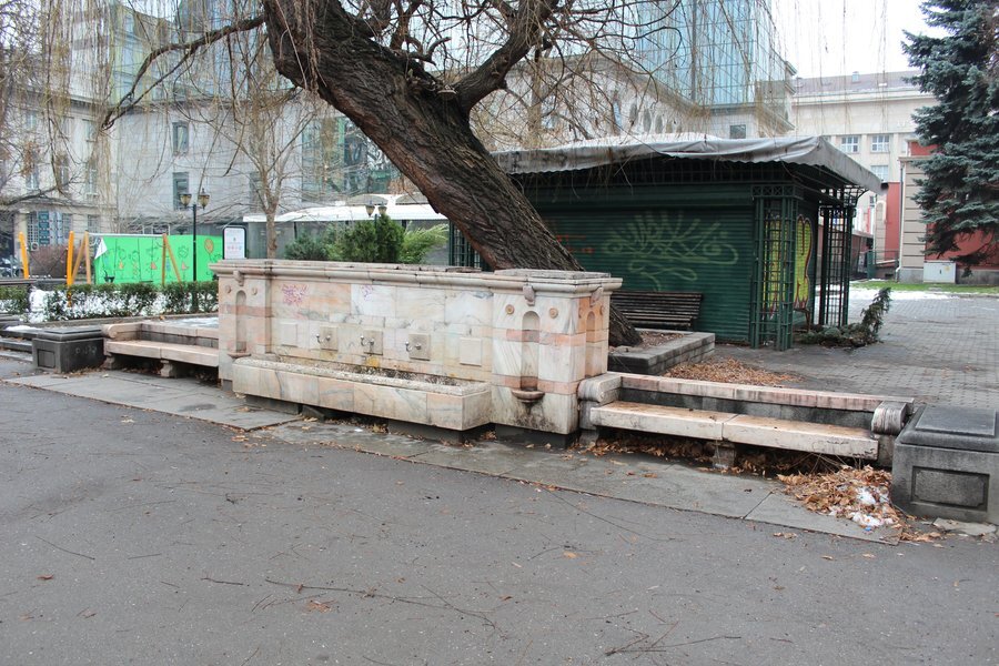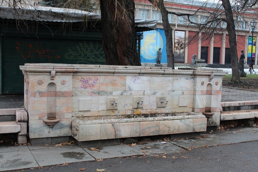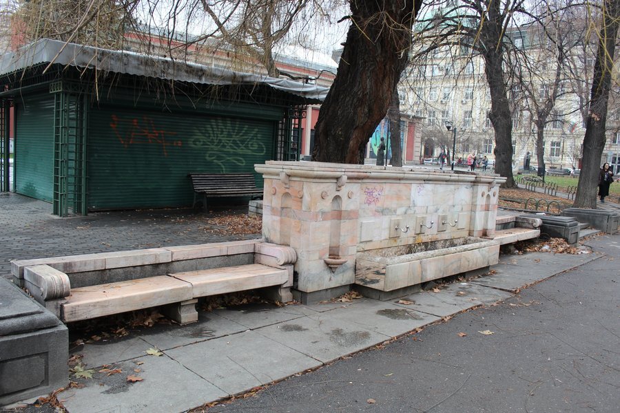 Величествената чешма се намира в една от най-историческите паркови зони в София – тази пред Народния театър „Иван Вазов“. Построена е в ранните години на XX век, когато е оформен и самият парк. Направена е изцяло от мрамор, а дизайнът ѝ включва три отделни струи.
