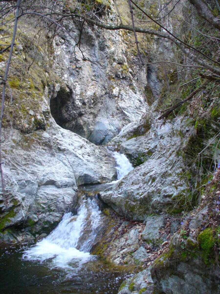 4. След **15 минути** ще видите **беседка** над потока. Нагоре, на **20 метра**, се сливат **два притока** – поемете **десния**.