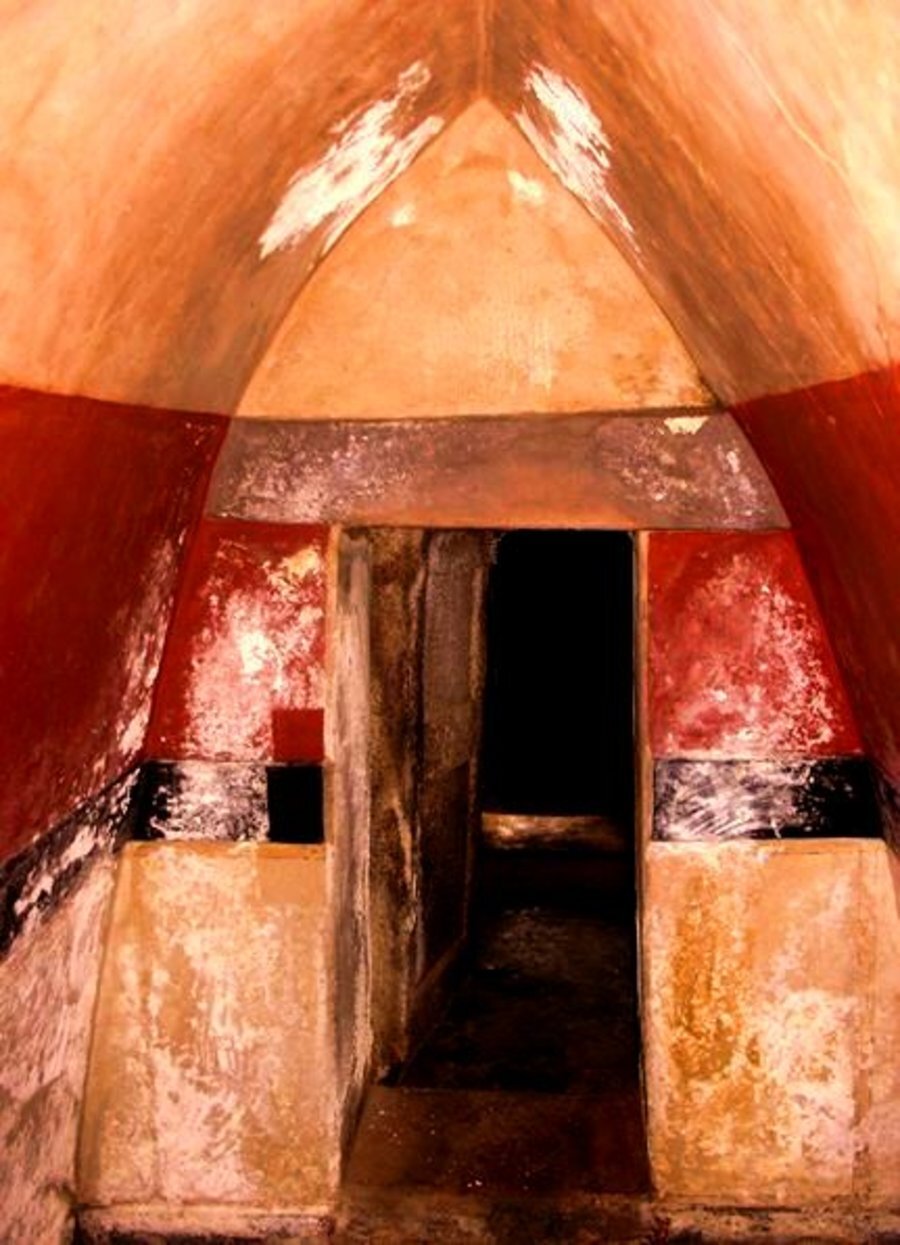 **Сарафова могила** се намира в близост до село **Крън**, приблизително **5 километра северно от Казанлък** и на около **1 километър източно** от главния път **Стара Загора – Казанлък – Шипка – Габрово**. Археологическите разкопки са проведени през **септември 1995 година**, когато е открит **древен подмогилен храм**, датиран между **IV и II век пр. Хр.** Некрополният комплекс включва: - **дълъг коридор**, изграден от **прецизно обработени каменни блокове**; - **две правоъгълни камери**, иззидани от **висококачествени тухли** (това е един от **двата запазени антични тухлени некропола** в България). Стените са били **измазани с щукатура** и украсени с **цветни хоризонтални ивици** в **бяло, черно, червено, оранжево и жълто**. Гробницата е **разграбена още в древността**, но при разкопките са открити: - **конски скелет** (в коридора); - **дребни златни и сребърни предмети**; - **позлатени глинени украси и амулети**.