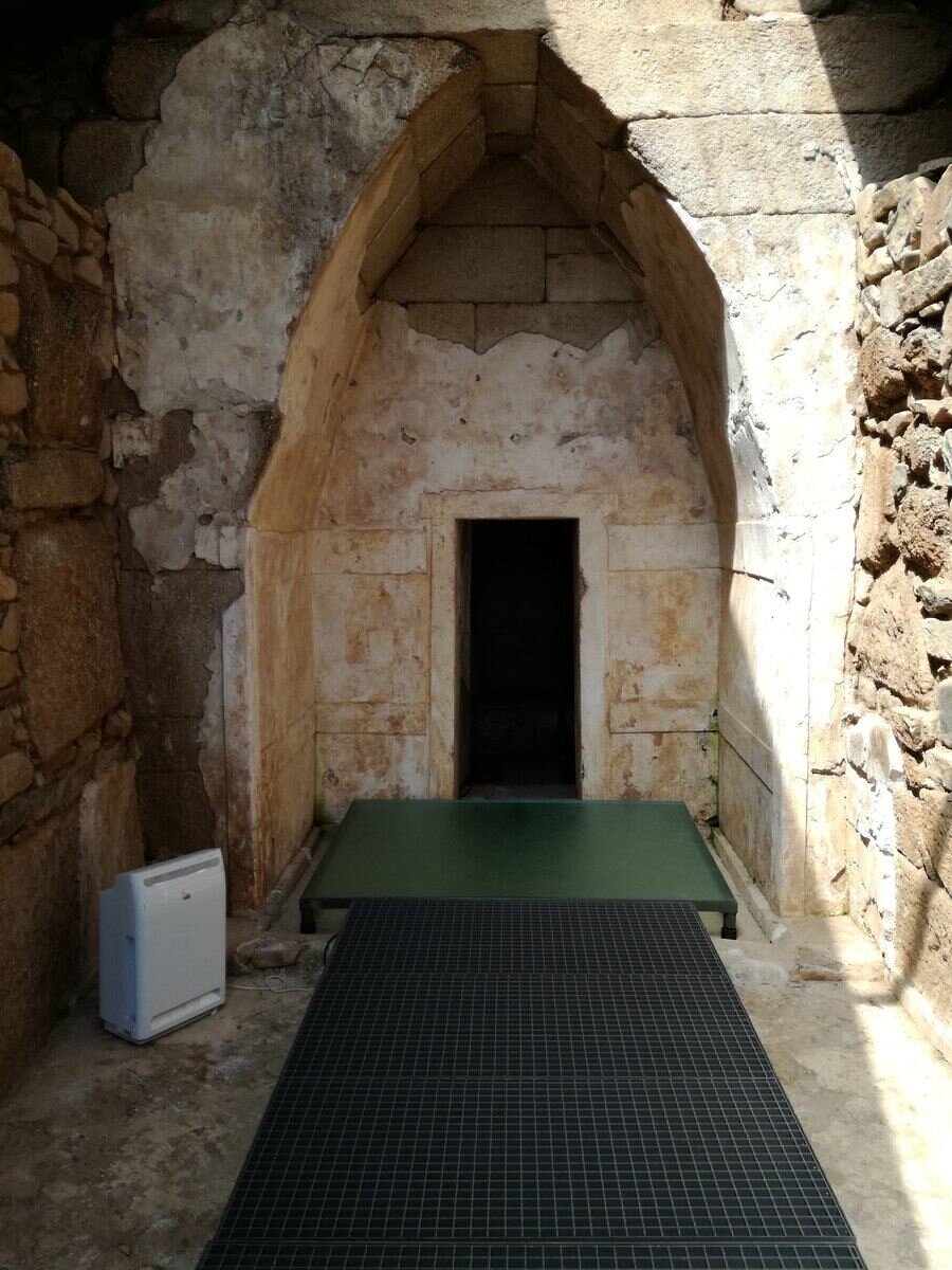 Дромосът е с голяма дължина и ширина, направен от разнородни по големина и форма блокове, споени с глина. Той е прилепен към фасадата на предверието, което се вижда от скритата мазилка на стените. Стените вътре в гробницата и преддверието са покрити с фино щуковано покритие, което наподобява релефна зидария. На места, където мазилката е разрушена, се появяват многоцветни стени. Според Георги Китов, това показва, че съоръжението е било използвано през поне два различни периода. Подът и в двете помещения, както и в дромоса, е покрит с тънък слой варова мазилка.