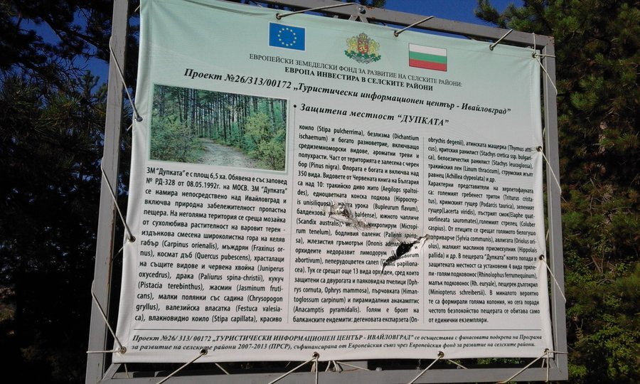 Защитената местност "Дупката" е обявена със заповед № РД-328 от 08.05.1992 г. на МОСВ. Тя се намира точно над град Ивайловград и включва природната забележителност – пропастна пещера.