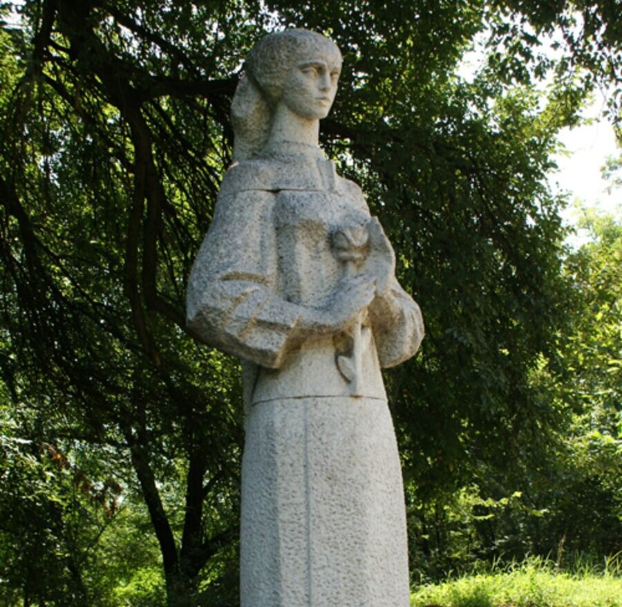 Между селата Ибинча и Харманли, на самия път, се намира една чешма, наречена Акъ балдъръ чешмеси. С тези думи започва известната българска поема „Изворът на белоногата“, създадена от Петко Славейков през 1873 година. Творбата възпява силата на българската жена и невероятната красота на селския живот. Славейков прекарва част от живота си в Харманли, опознавайки този край, и е обзет от желание да открие къде е погребан Вълкашин. Именно това търсене го отвежда до тази чешма, прославена впоследствие благодарение на него. Акъ балдъръ чешмеси, днес наричана Изворът на белоногата, е построена в края на XVI век от Сиавюш паша. До нея е издигната статуя на главната героиня – белоногата Гергана, чието достойно поведение впечатлило великия везир. Според преданията, на мястото имало три мраморни надписа, но до днес е запазен само един: „Благодарение на водата всяко нещо е живо. Благотворителят почитания Сиавюш паша. 1585.“ През 1960 г. Археологическият институт при БАН провежда разкопки, потвърдили, че чешмата край Харманли е изградена в края на XVI век заедно с известния мост Олудере и вече несъществуващите кервансарай, джамия и хамам. При проучванията е открита и тракийска керамика от предримската епоха, свидетелстваща, че на това място е имало живот още преди 2500 години. С други думи – около този извор винаги е кипял живот.