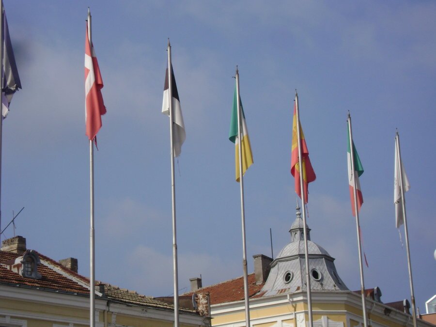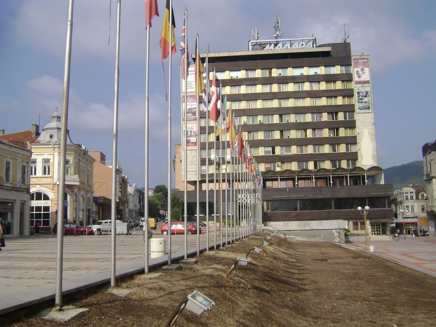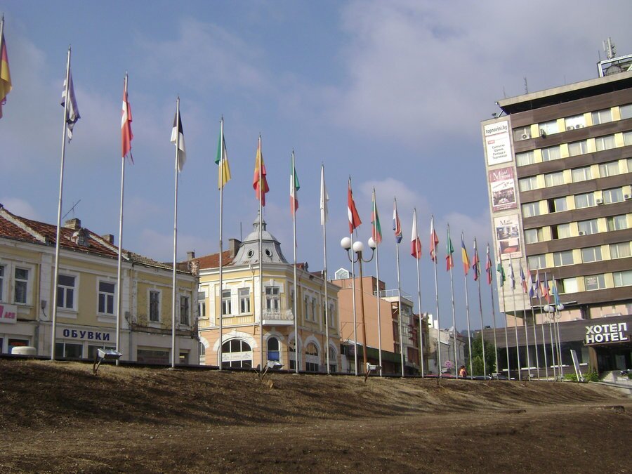 Алеята с флаговете на Европейския съюз бе официално открита на 1 януари 2007 г. в чест на присъединяването на България към ЕС. На площад „Освобождение“ са изложени всички знамена на държавите членки. От 16 август 2013 г. там е добавен и флагът на Хърватия, която стана най-новият член на съюза. Флаговете се закупуват с финансиране от общината и се подменят веднъж годишно.