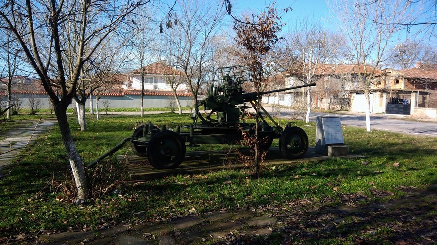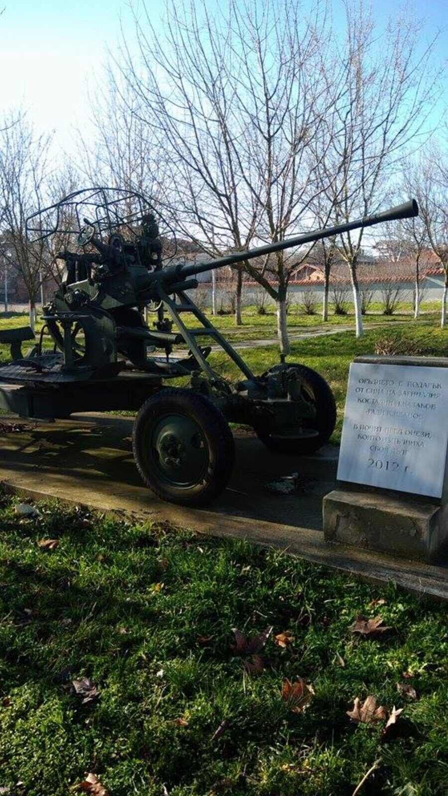 Оръдието е дарение от Ради Костадинов Казаков, син на Костадин Иванов Казаков, загинал във Втората световна война. То символизира почитта към всички, които са изпълнили своя дълг към отечеството. Разположено е до паметника в чест на жертвите от войната.